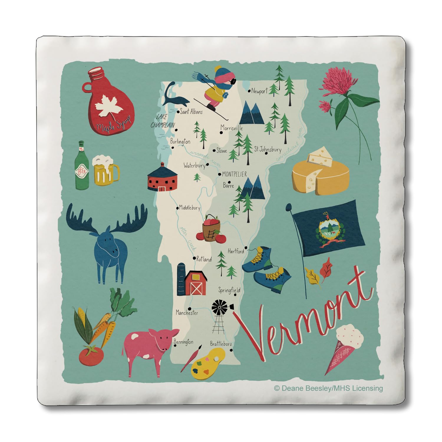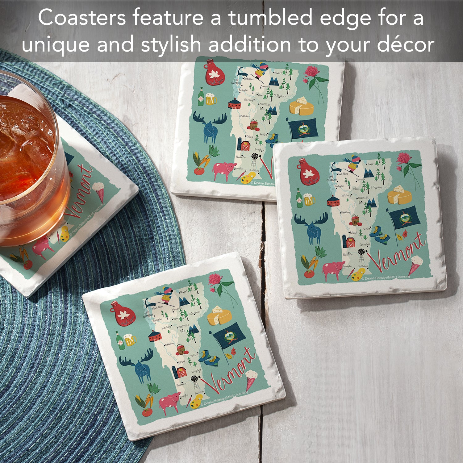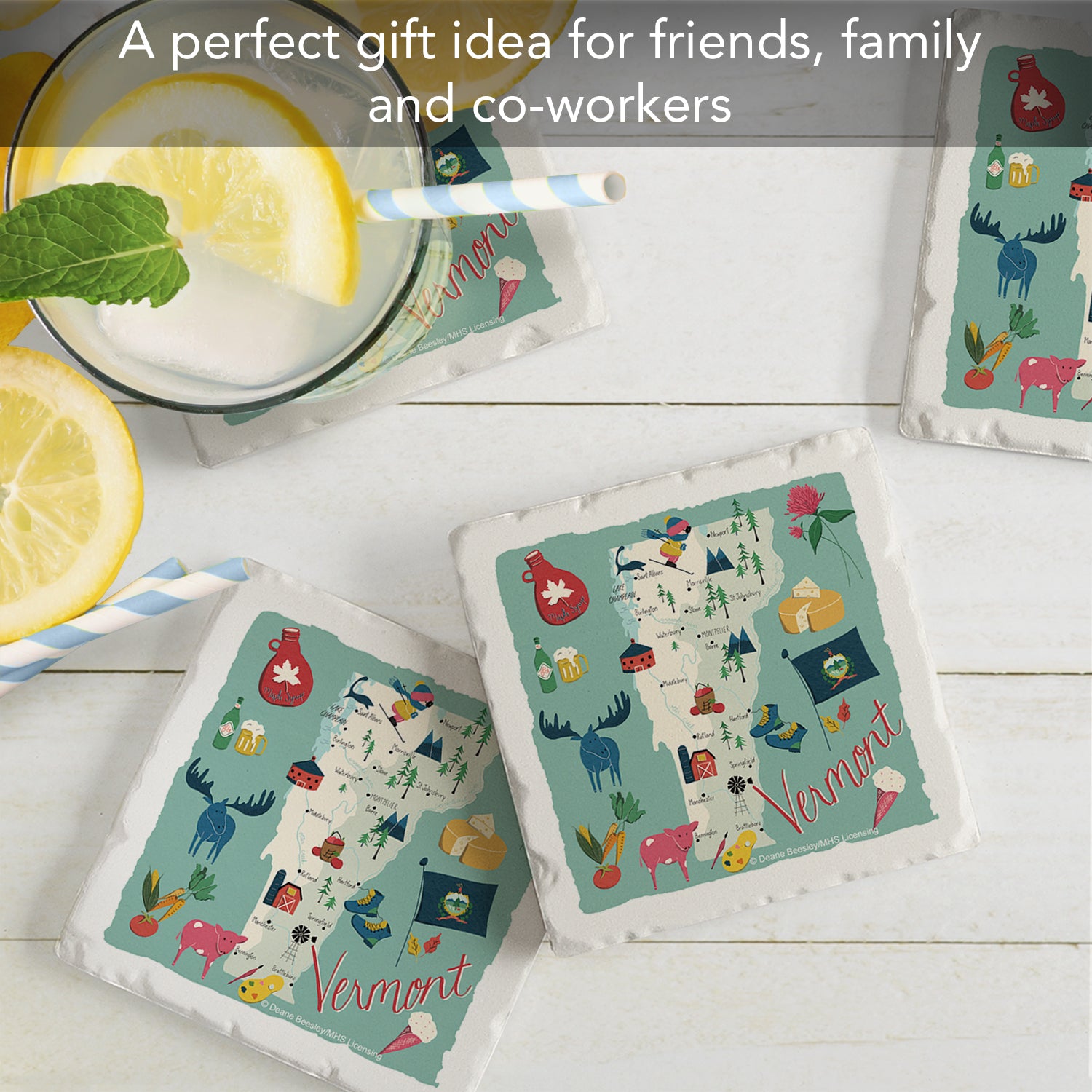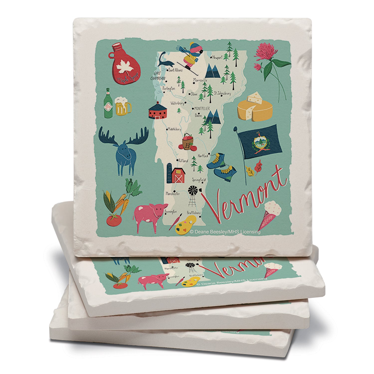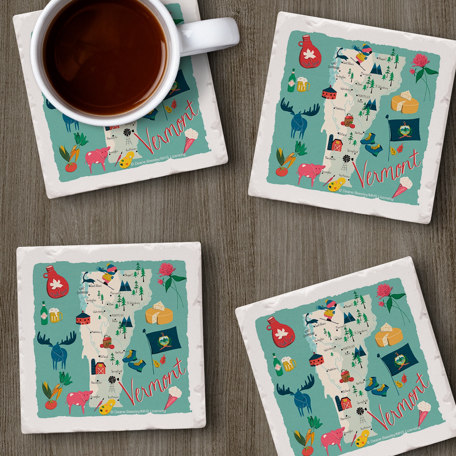 Thirstystone Vermont Home State 4 Pack Tumbled Tile Stone Coasters 4" Square Manufactured in the USA