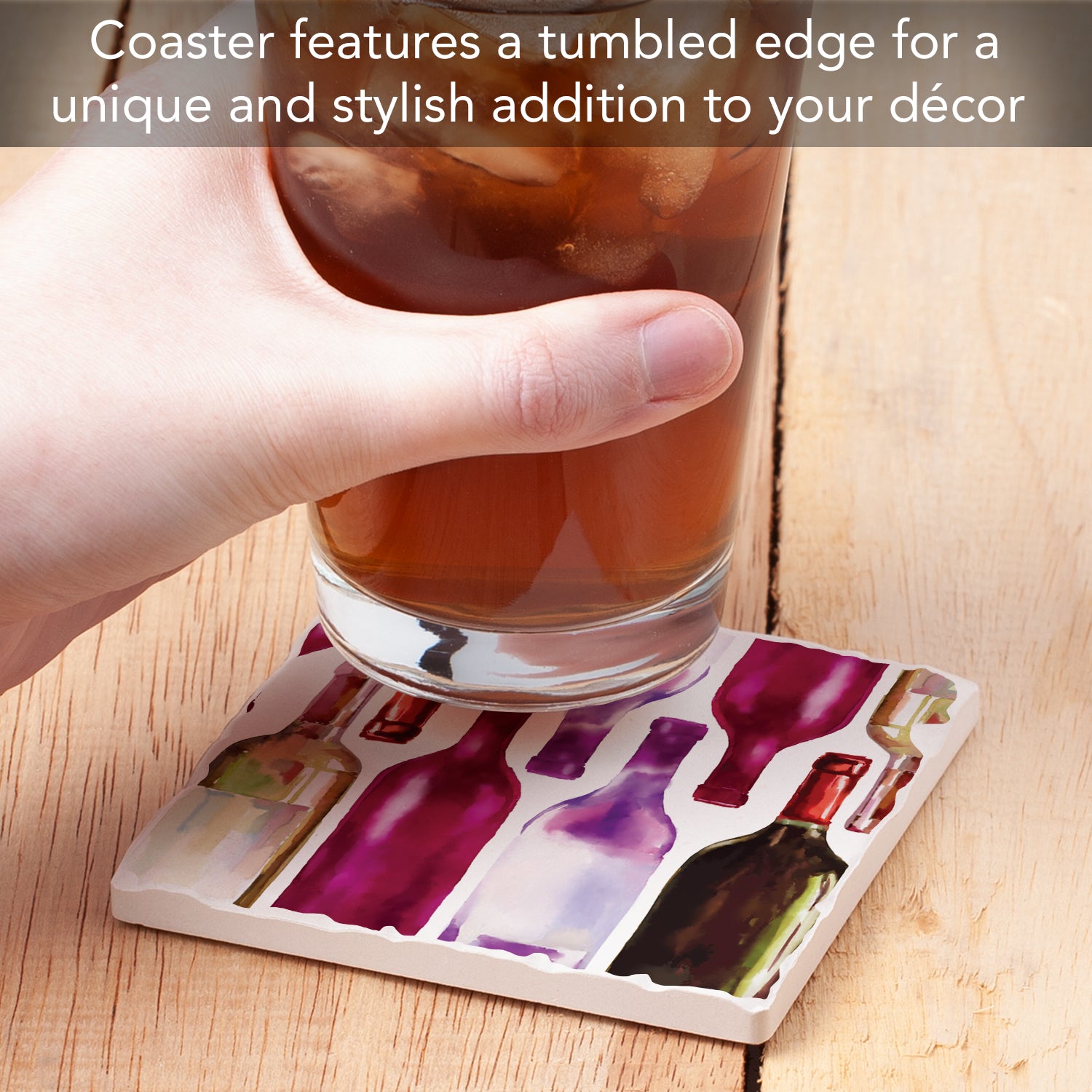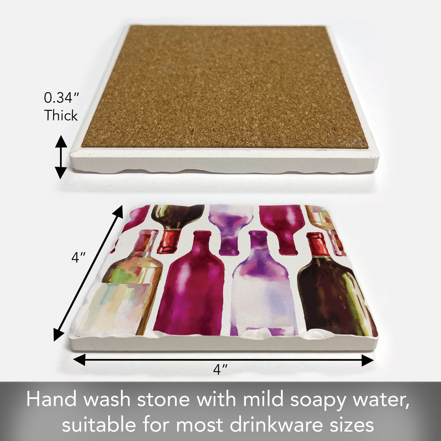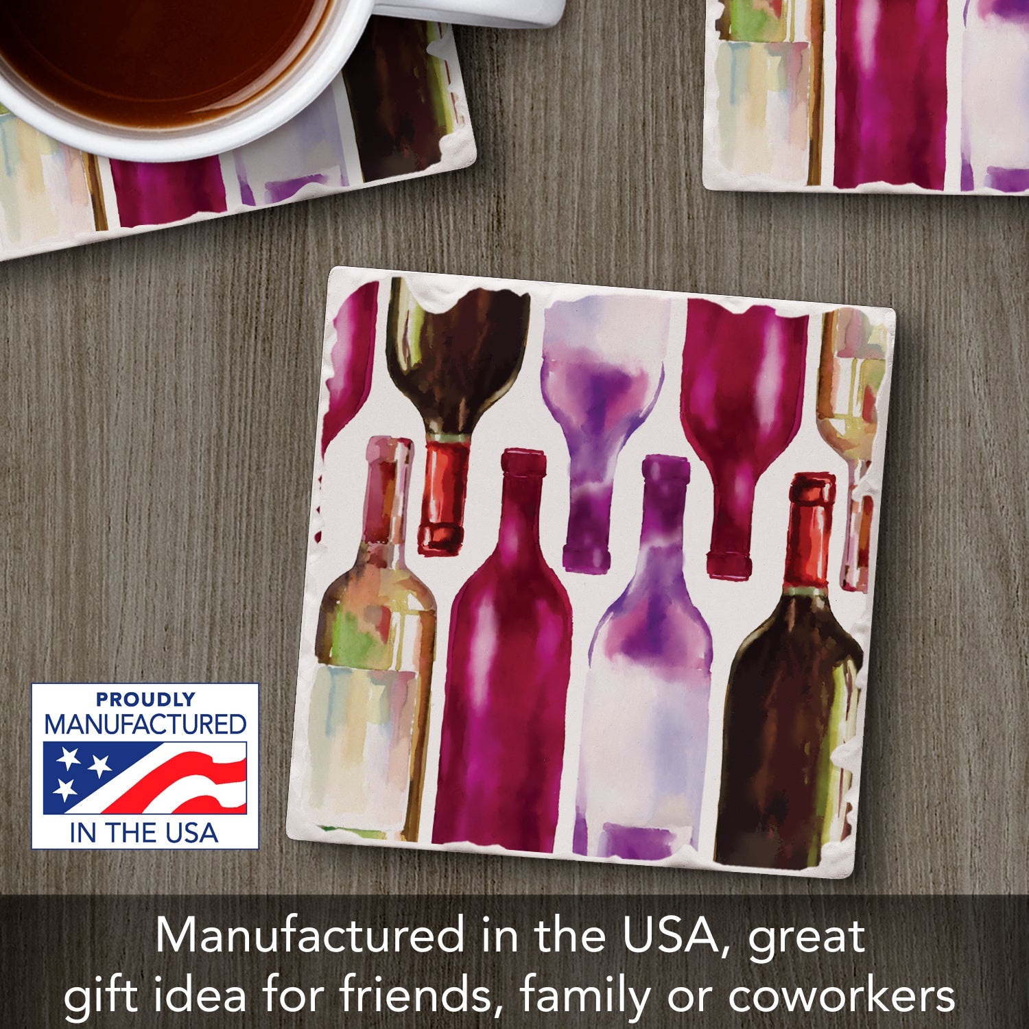 Thirstystone Watercolor Wine Bottles Single Tumbled Tile Stone Coaster with Protective Cork Backing Manufactured in The USA 4" Square, Artistic, Easily Wipes Clean