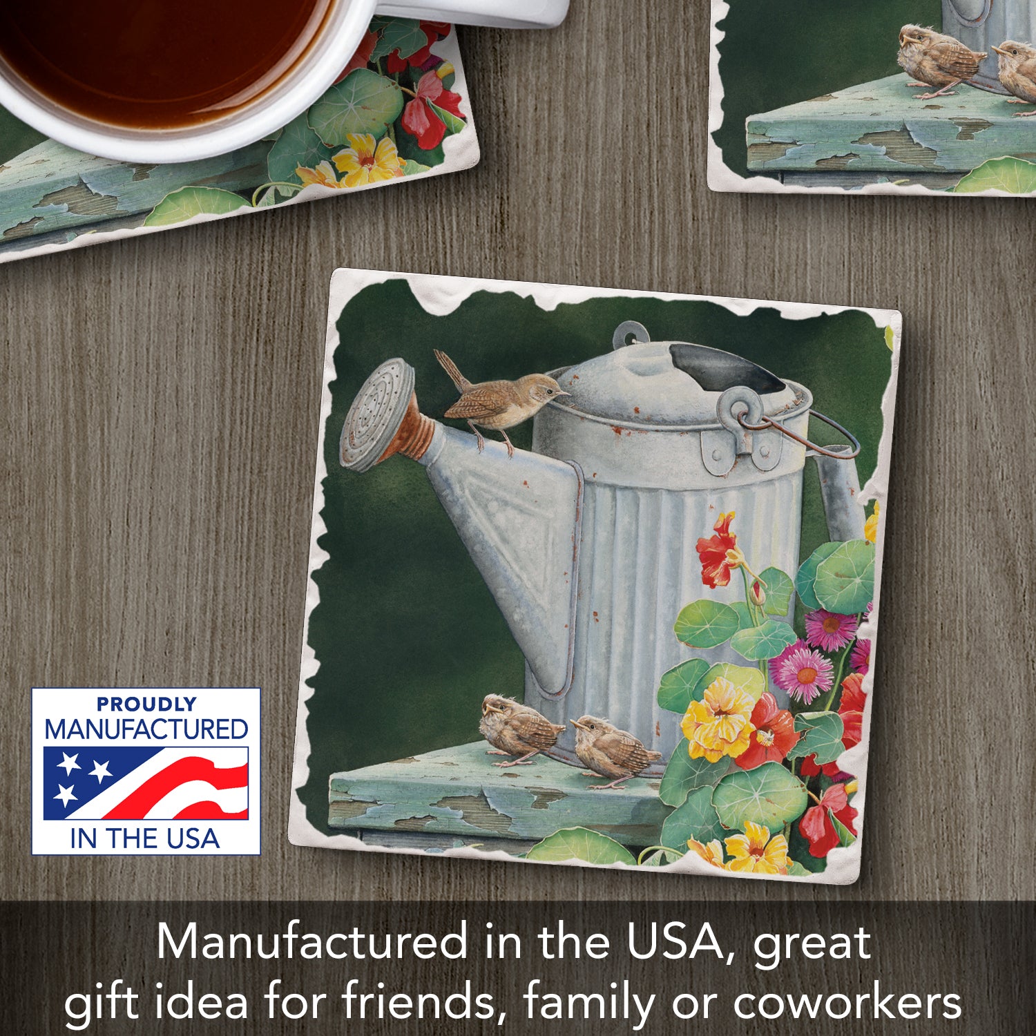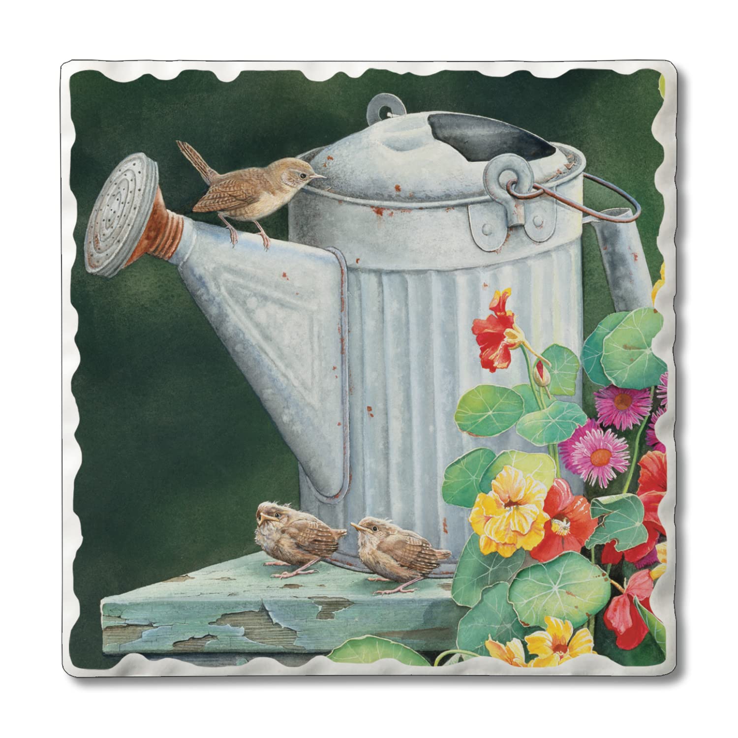 Thirstystone Watering Birds Single Tumbled Tile Stone Coaster with Protective Cork Backing Manufactured in The USA 4" Square, Artistic, Easily Wipes Clean