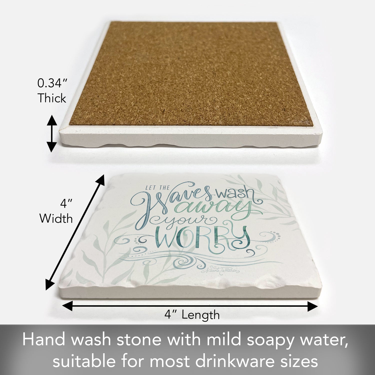 - ARTISTIC DESIGN-Beautiful artistic design allows the Coaster to remain displayed even when not in use. Each Coaster measures 4" x 4" x .25". Sized to fit larger Mugs & Glasses.