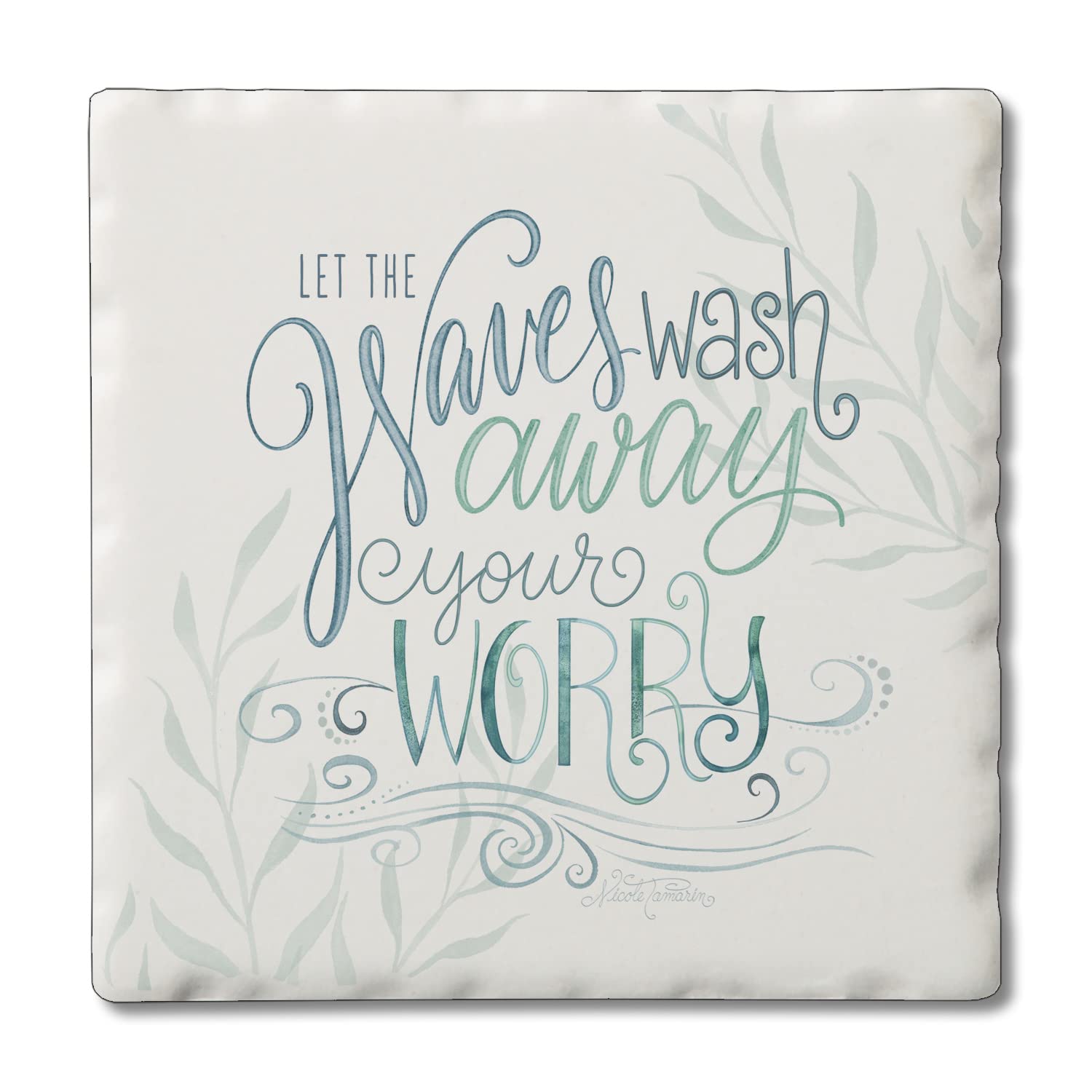 Thirstystone Waves Wash Single Tumbled Tile Stone Coaster with Protective Cork Backing Manufactured in The USA 4" Square, Colorful, Artistic, Easily Wipes Clean