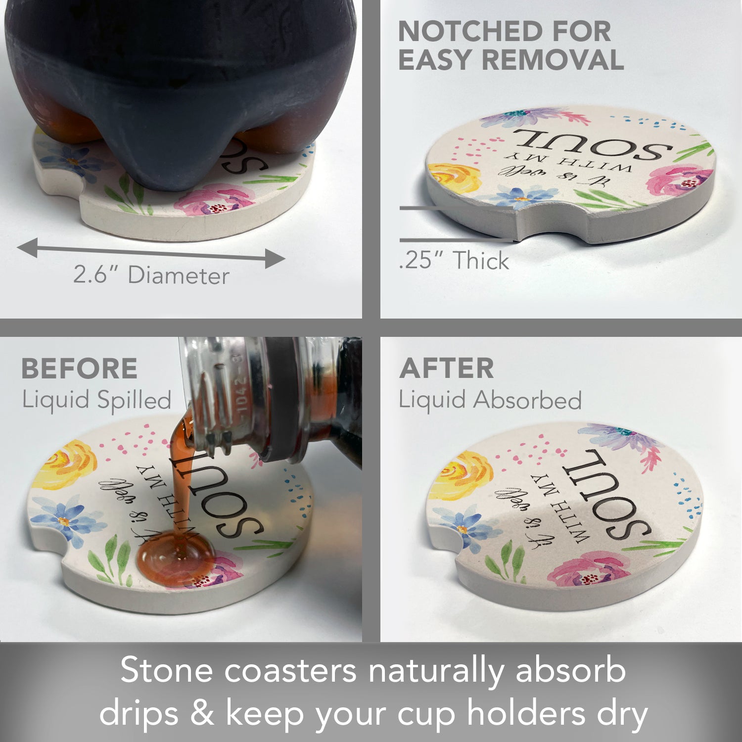 Thirstystone Well with My Soul Single Absorbent Stone Coaster for Vehicle Cup Holder 2.6” Diameter Manufactured in The USA