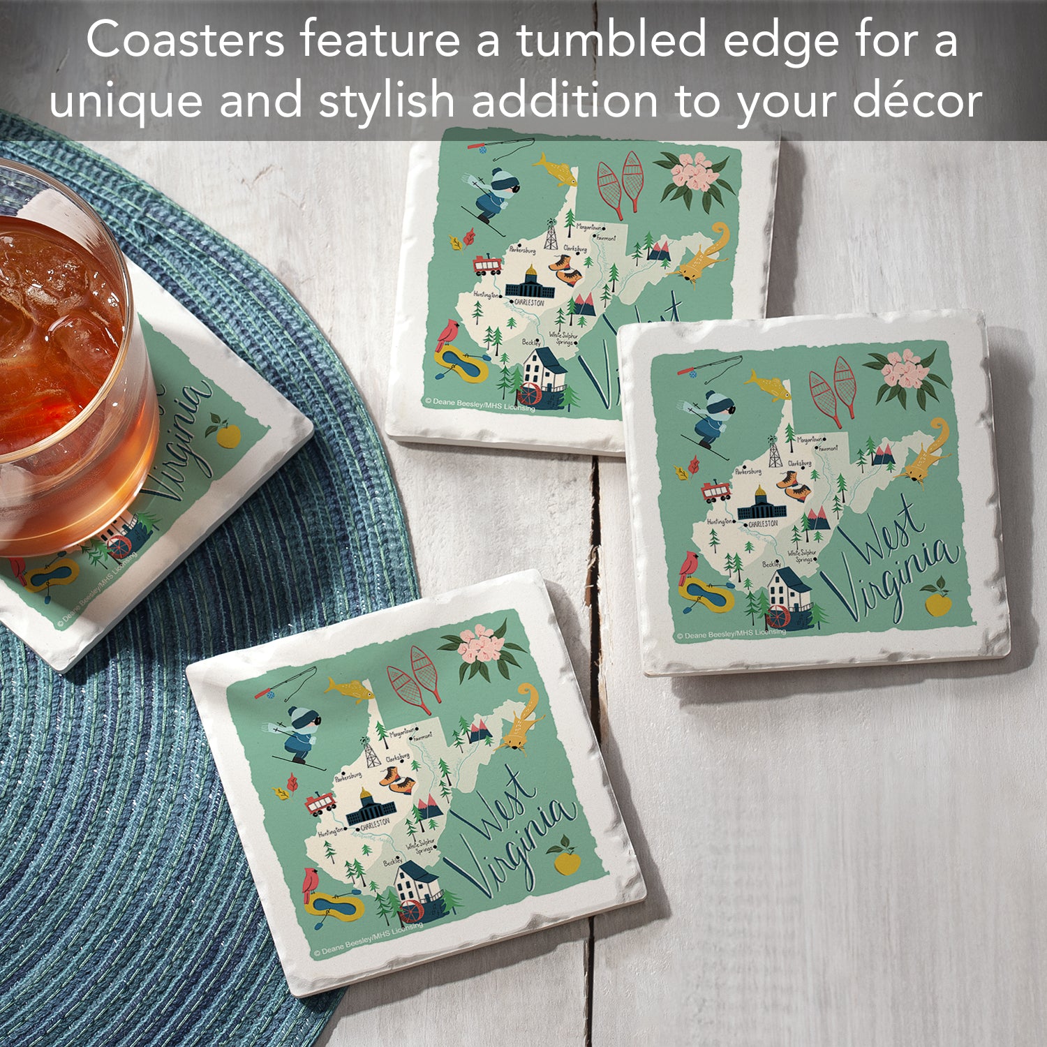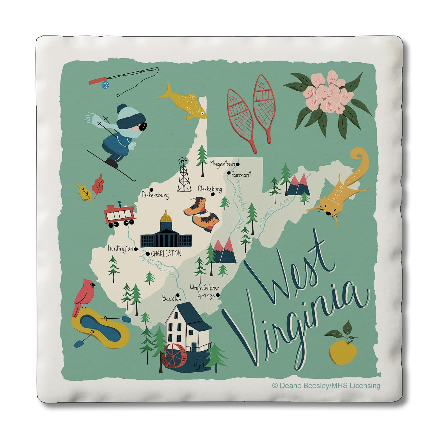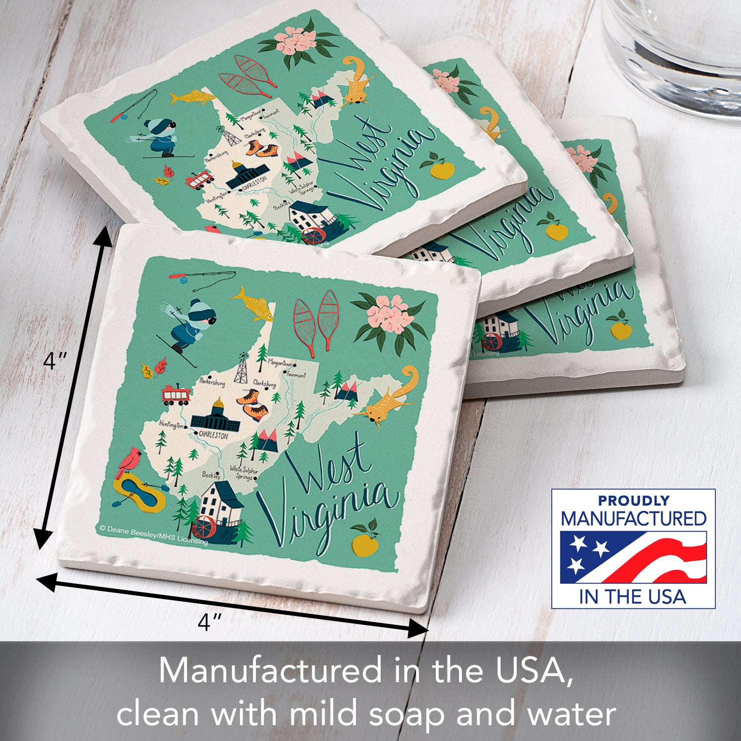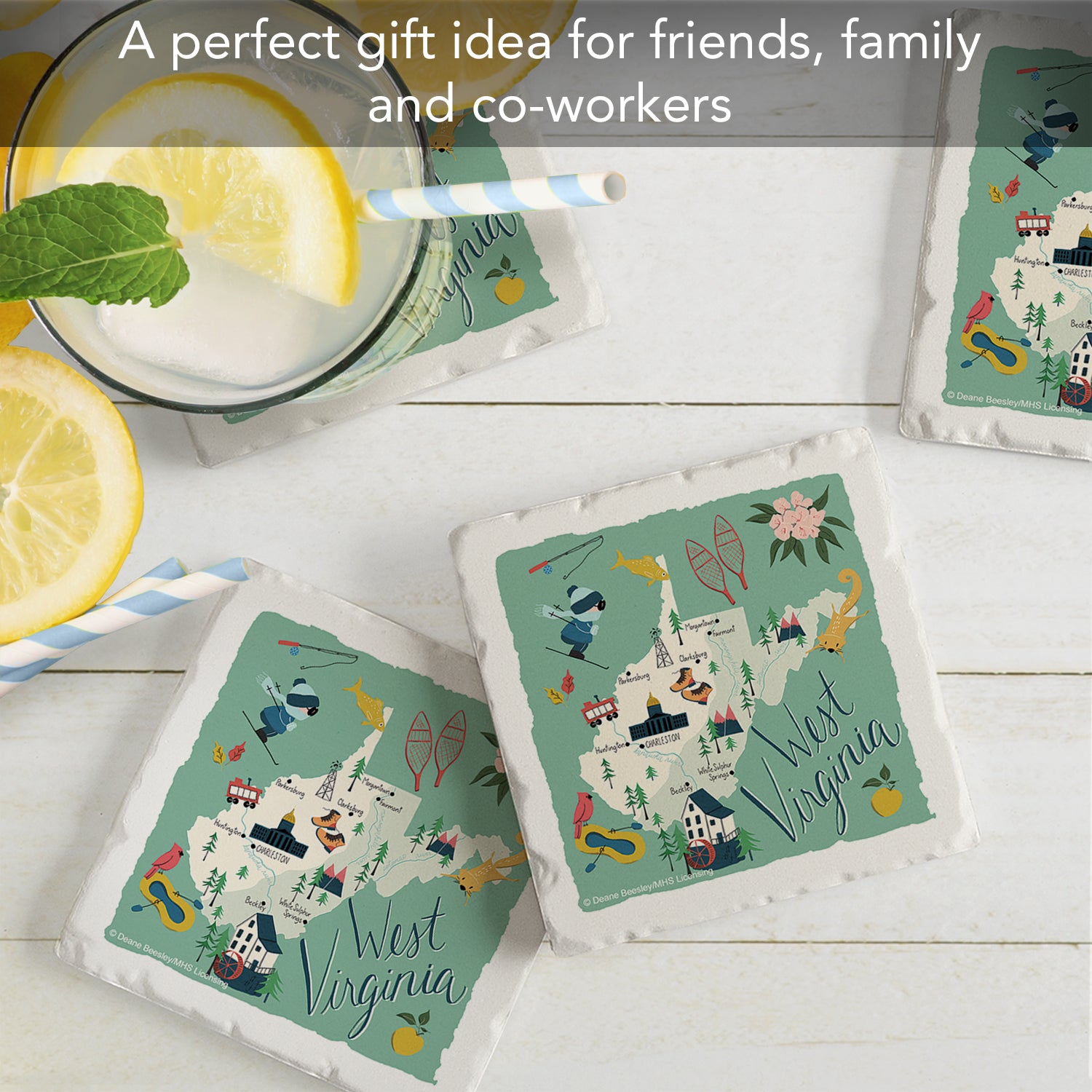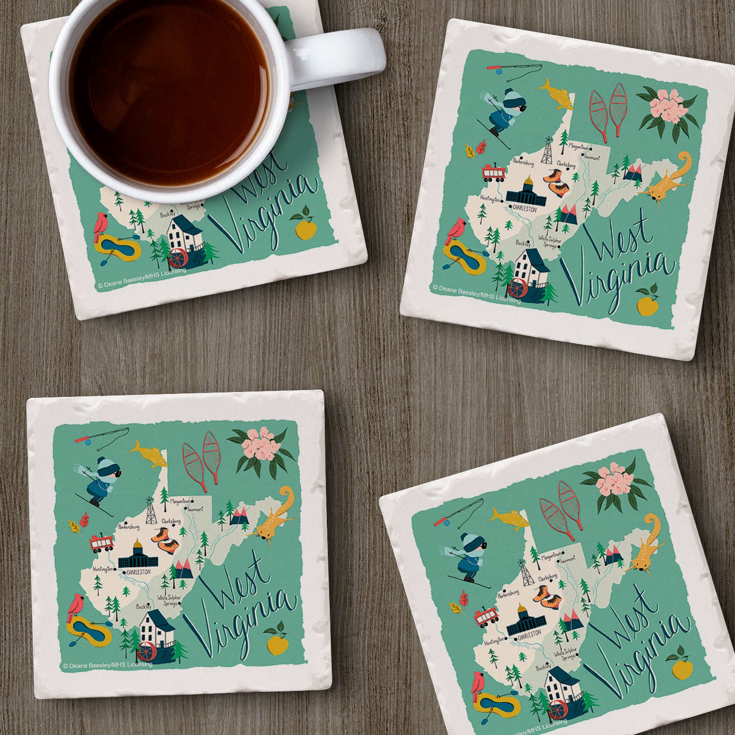 Thirstystone West Virginia Home State 4 Pack Tumbled Tile Stone Coasters 4" Square Manufactured in the USA