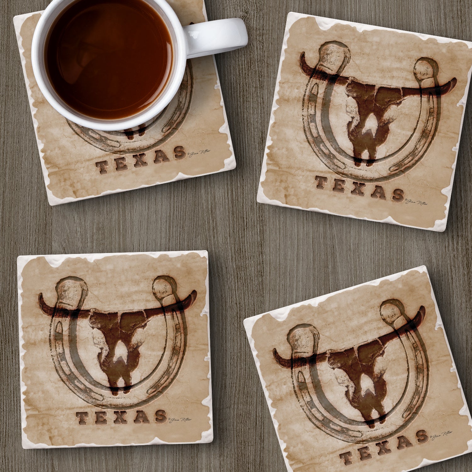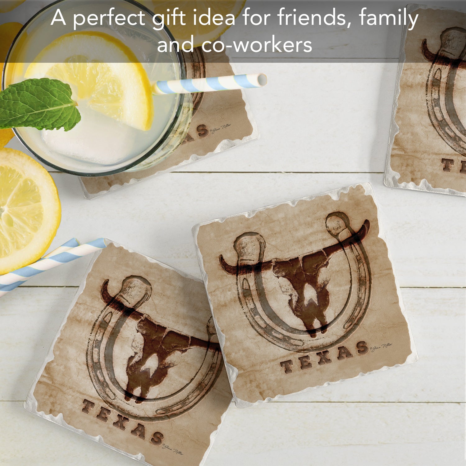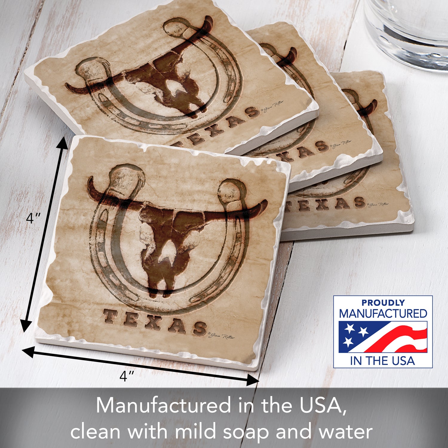 Thirstystone Western Skull 4 Pack Tumbled Tile Stone Coasters 4" Square Manufactured in the USA