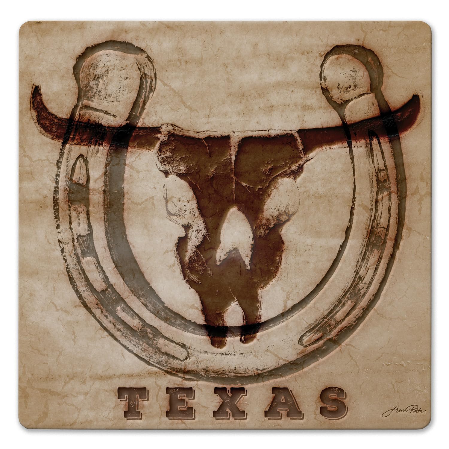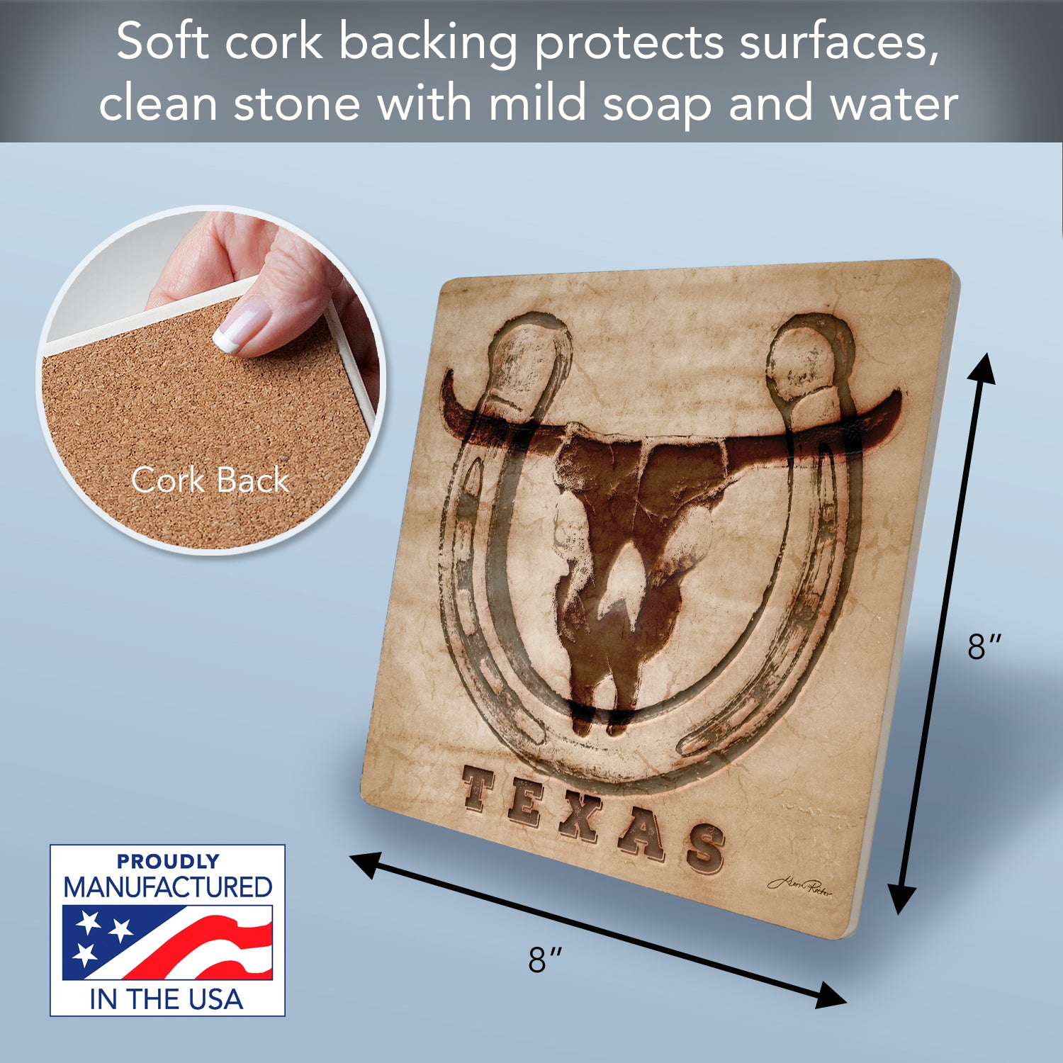 Thirstystone Western Skull Decorative Heat Tolerant Stone Trivet with Non-Skid Cork Backing 8” Square