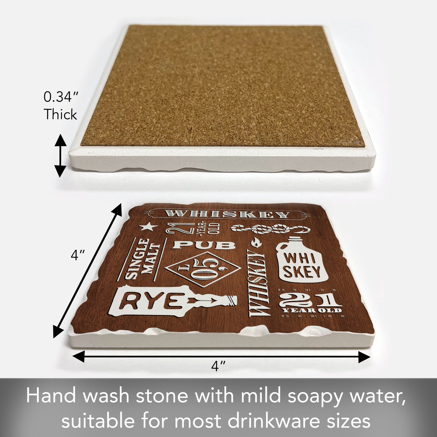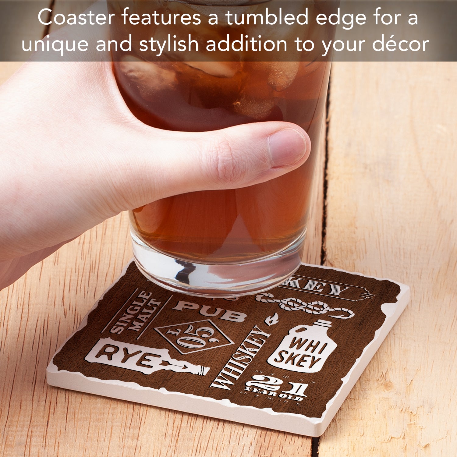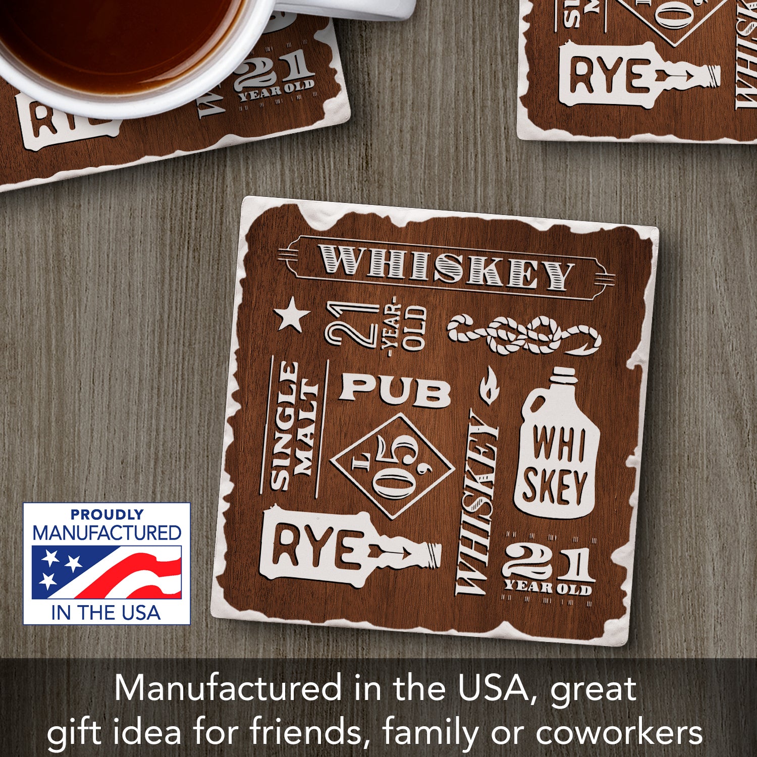 Thirstystone Whiskey Collage Single Tumbled Tile Stone Coaster with Protective Cork Backing Manufactured in The USA 4" Square, Artistic, Easily Wipes Clean