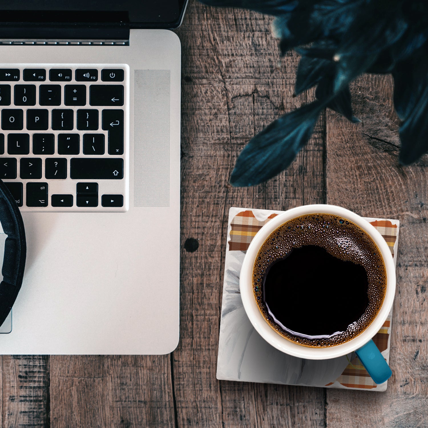 FUNCTIONAL ART-Beautiful artistic design allows the Coaster to remain displayed even when not in use. Each Coaster measures 4” x 4” x .25”. Sized to fit larger Mugs & Glasses.