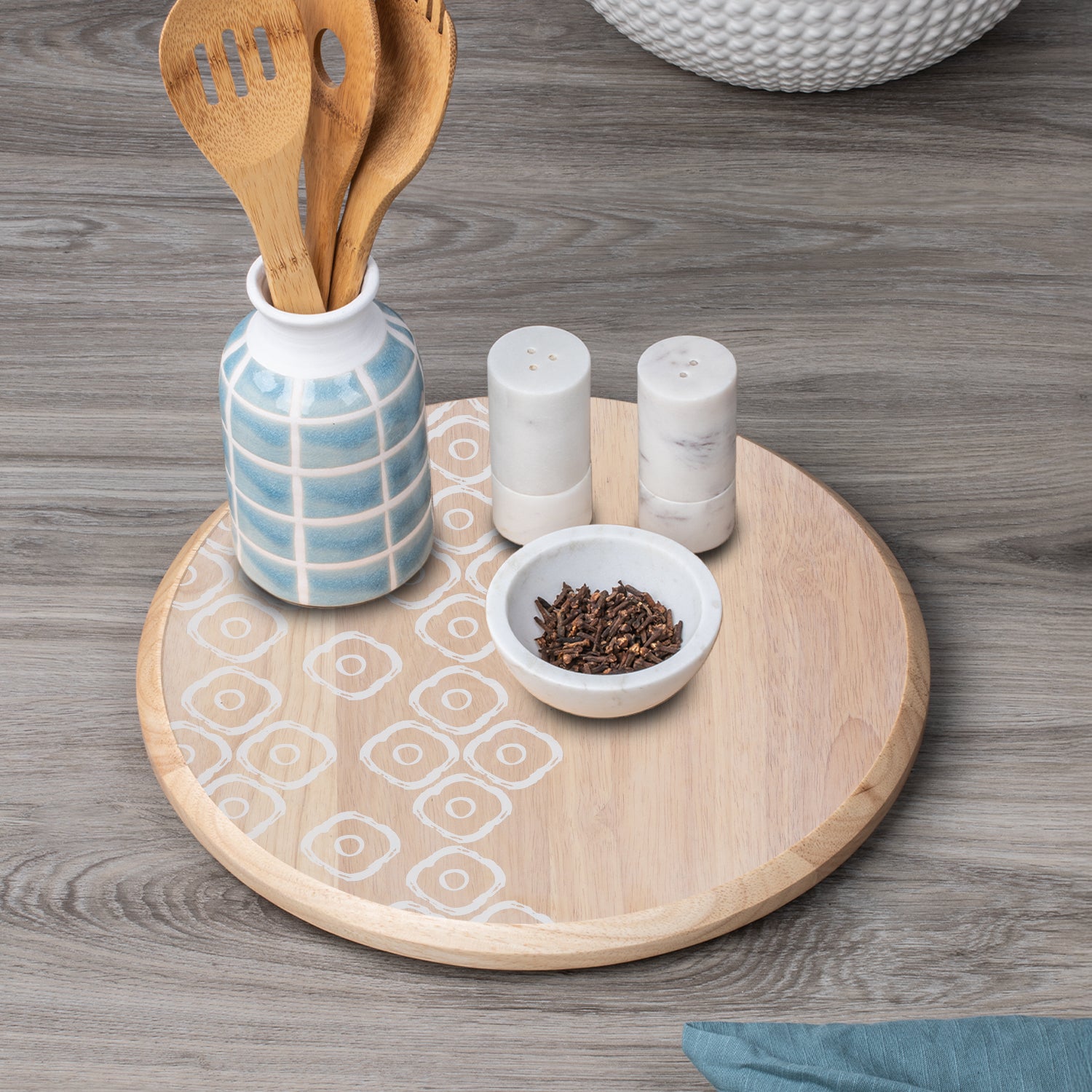 Whitewash Rubber Wood Lazy Susan Turntable 14" Diameter Condiment Caddy, Charcuterie Board, Serving Turntable