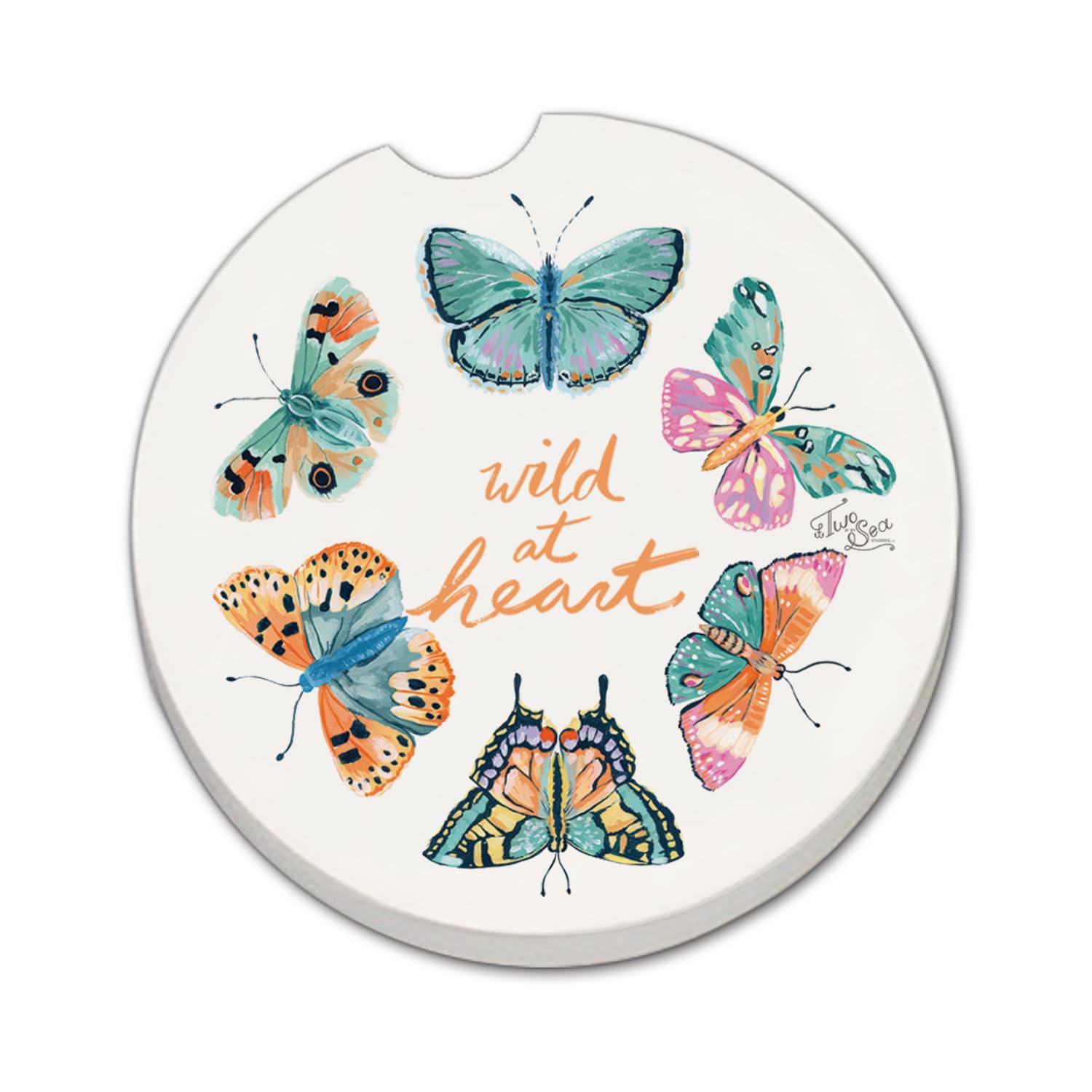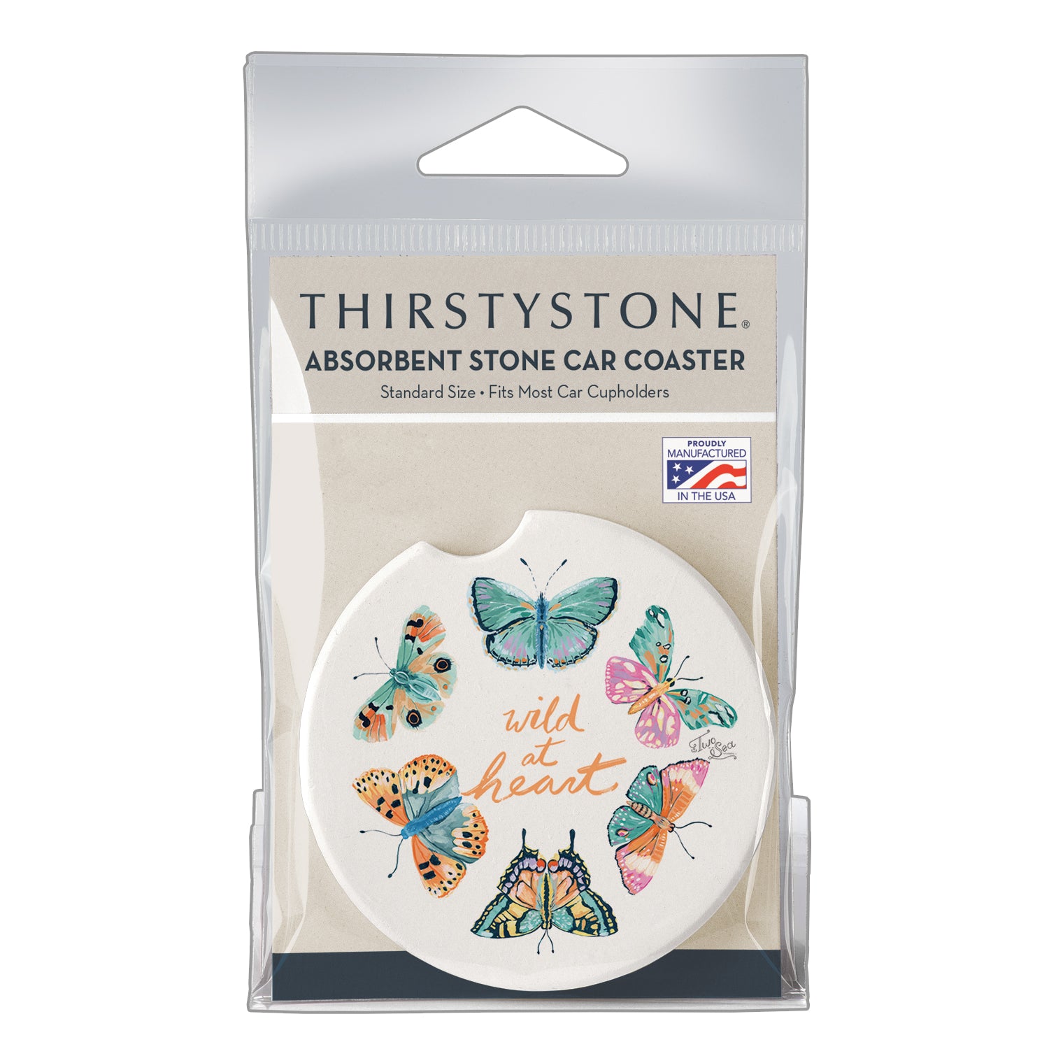 Thirstystone Wild at Heart Butterflies Single Absorbent Stone Car Coaster 2.6” Diameter Manufactured in the USA