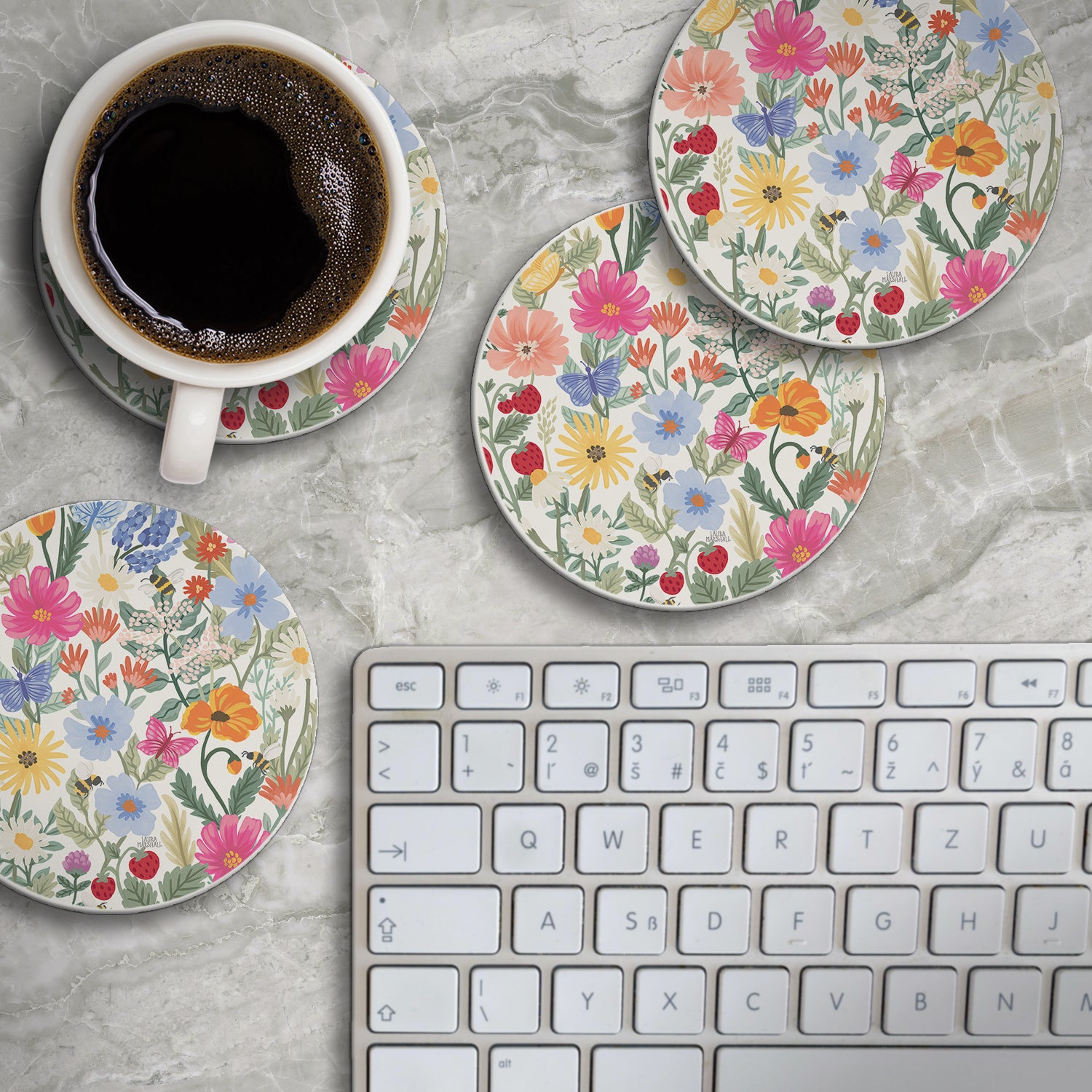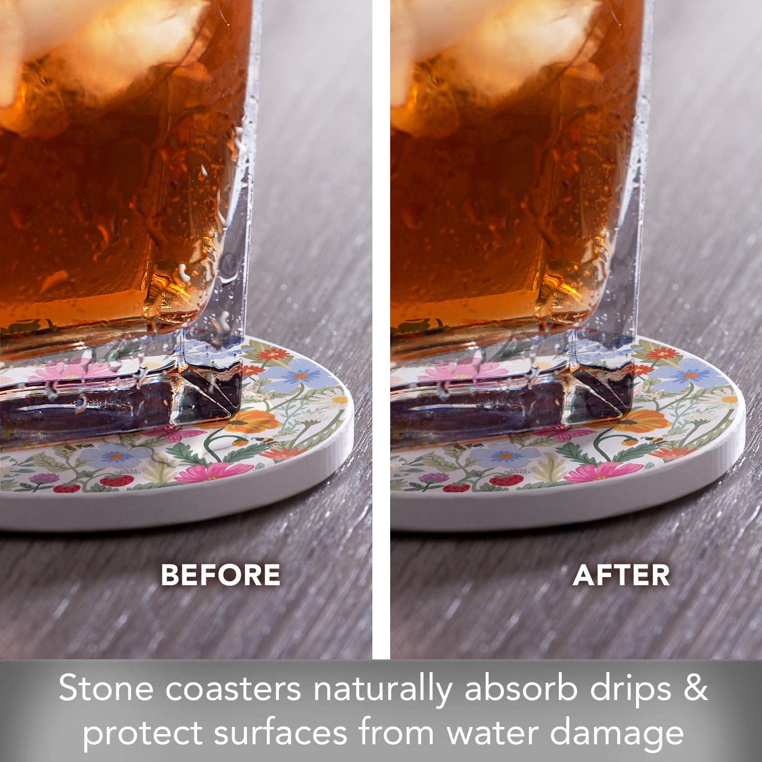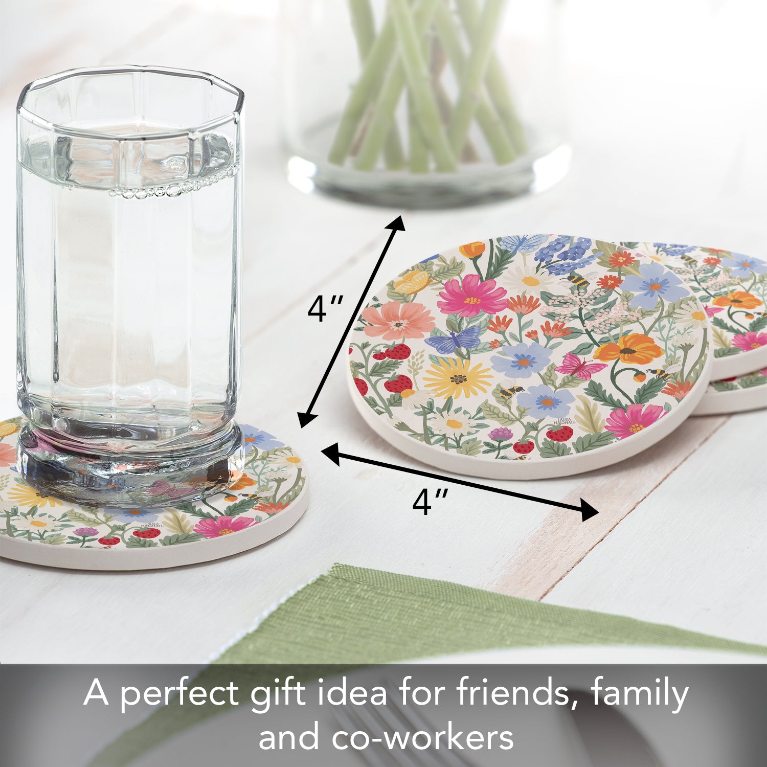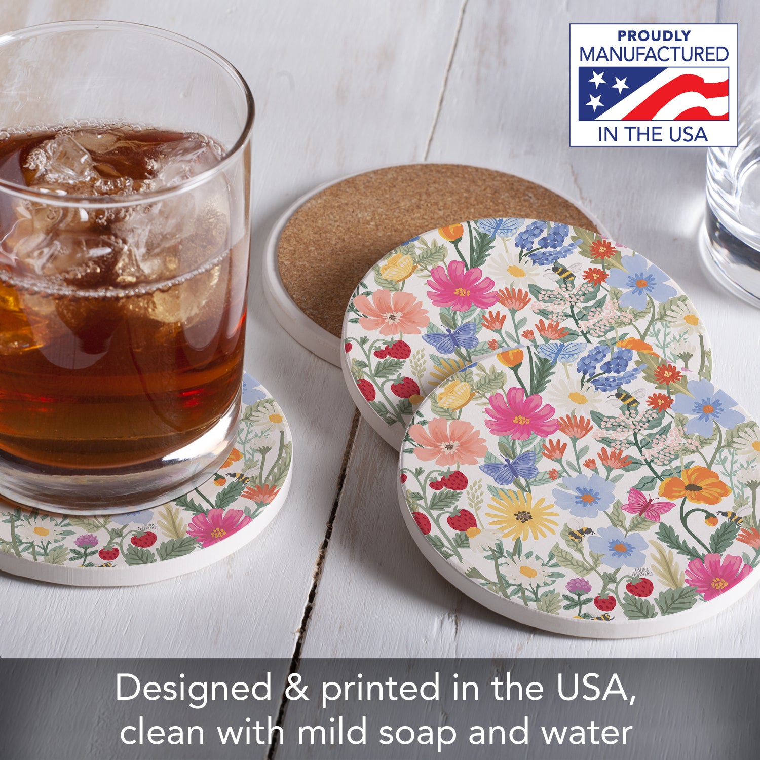 Thirstystone Wild Meadow 4 Pack Round Absorbent Stone Coasters 4" Diameter Manufactured in the USA