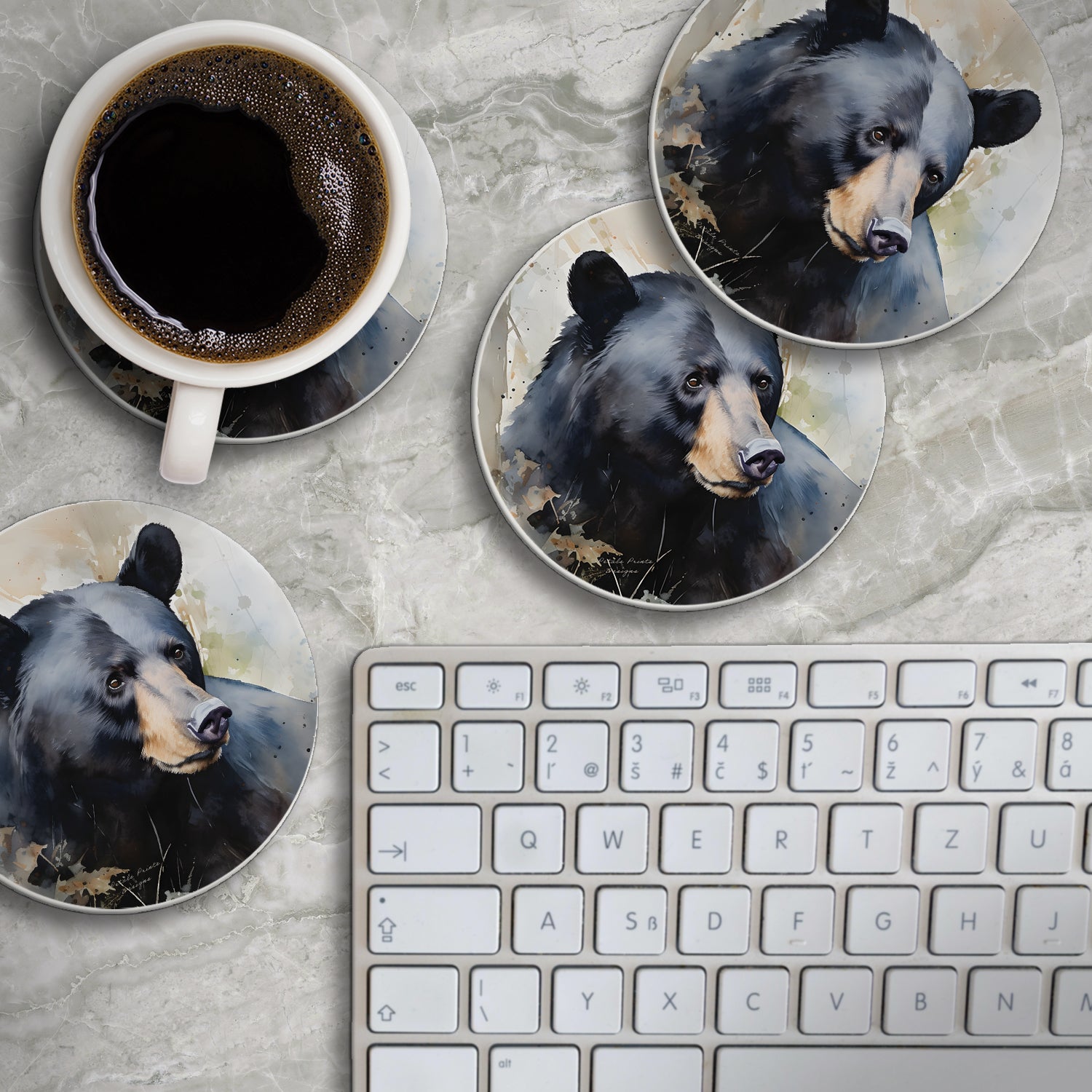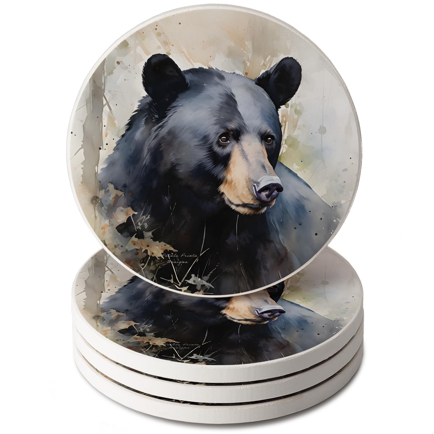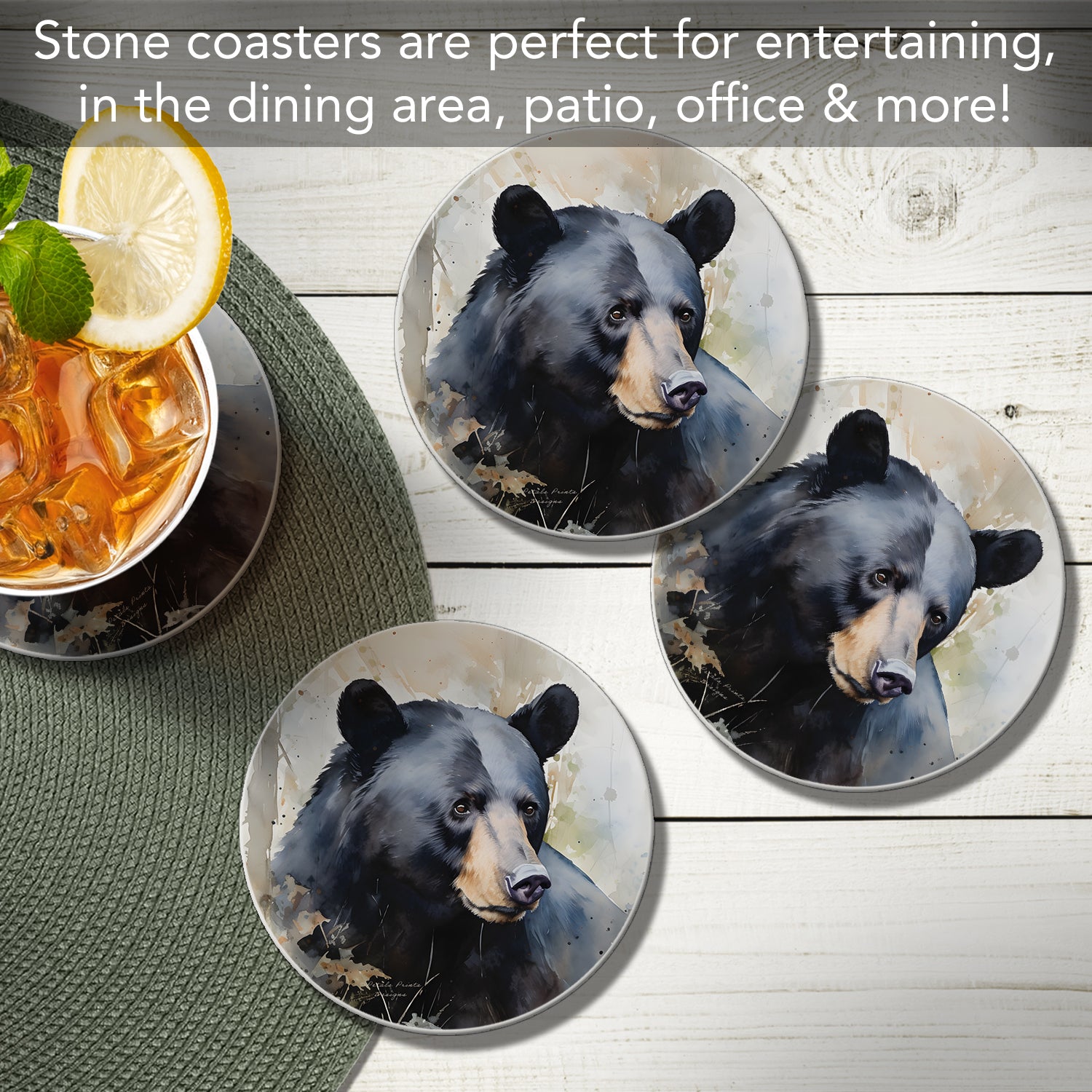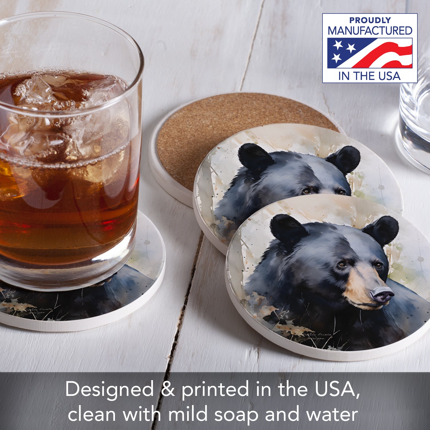 Thirstystone Wilderness Bear 4 Pack Round Absorbent Stone Coasters 4" Diameter Manufactured in the USA