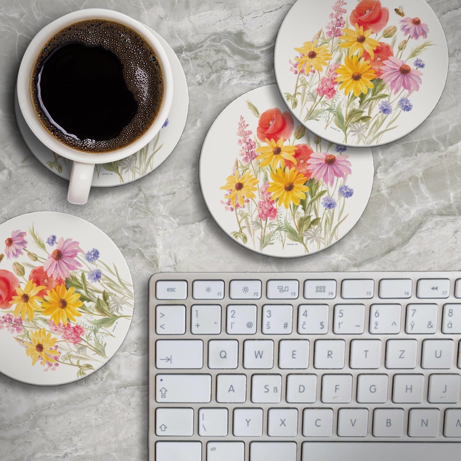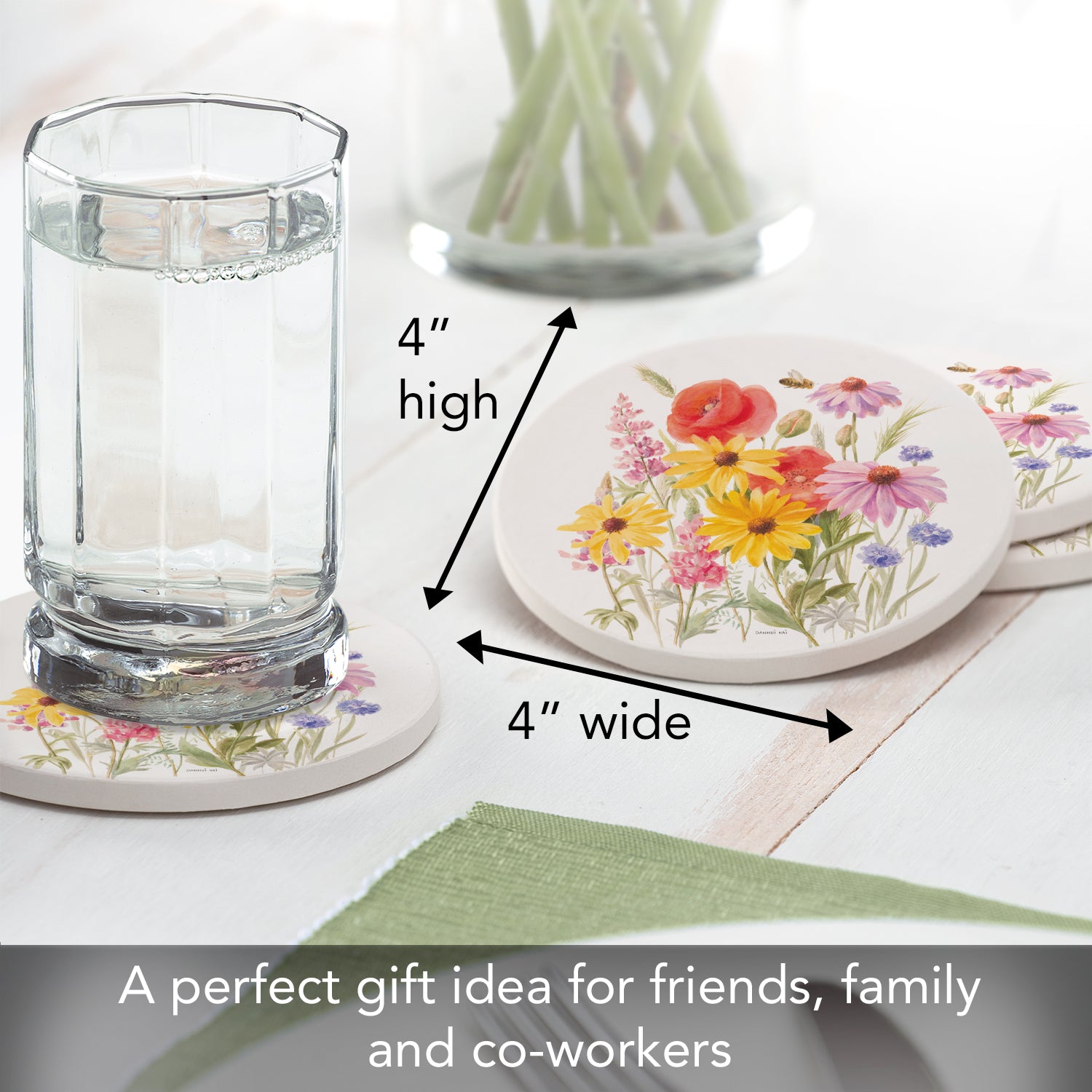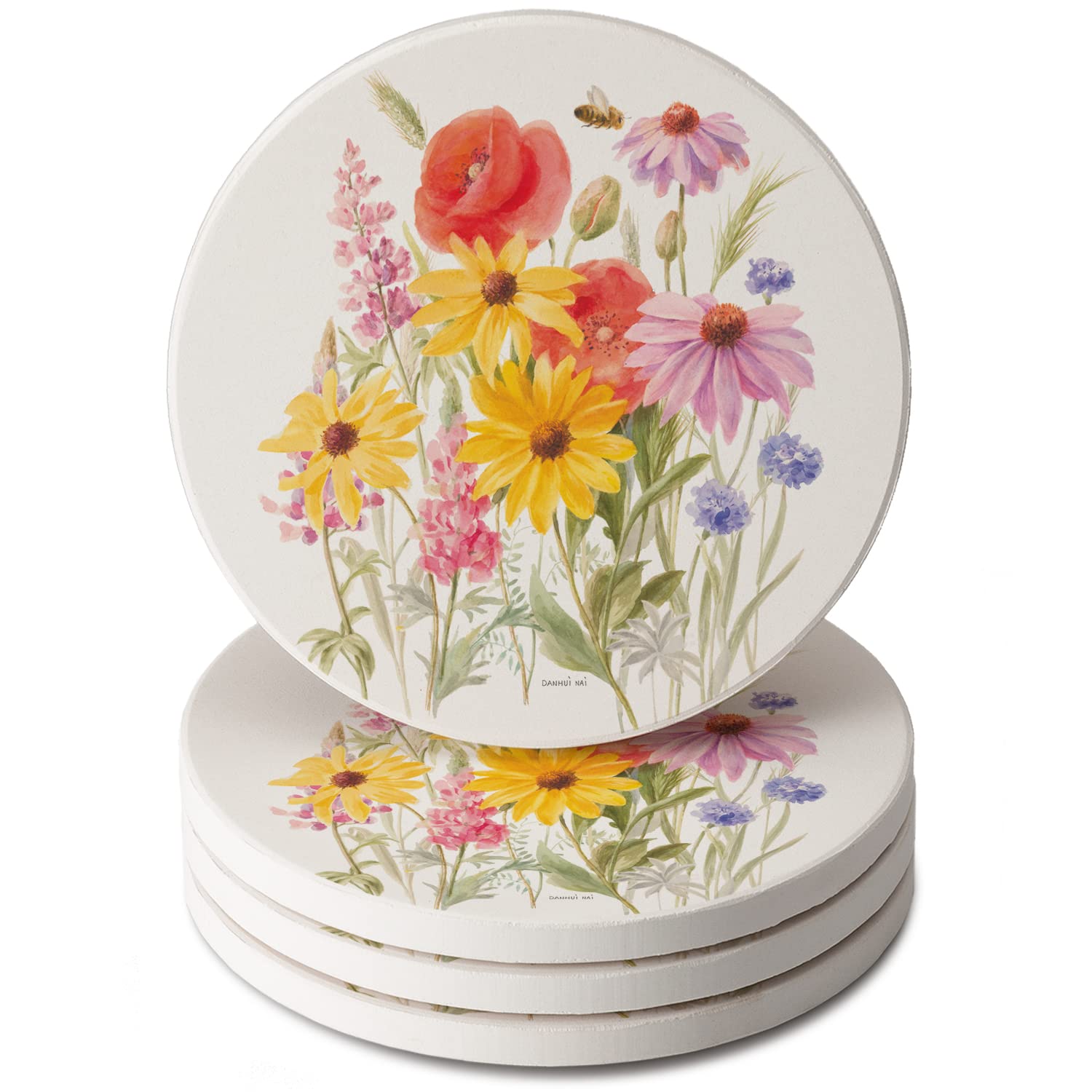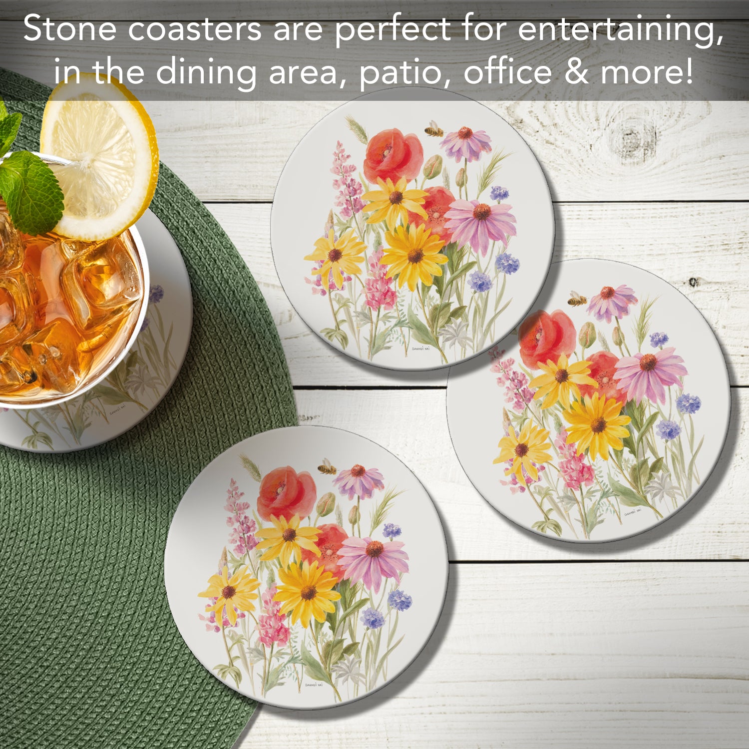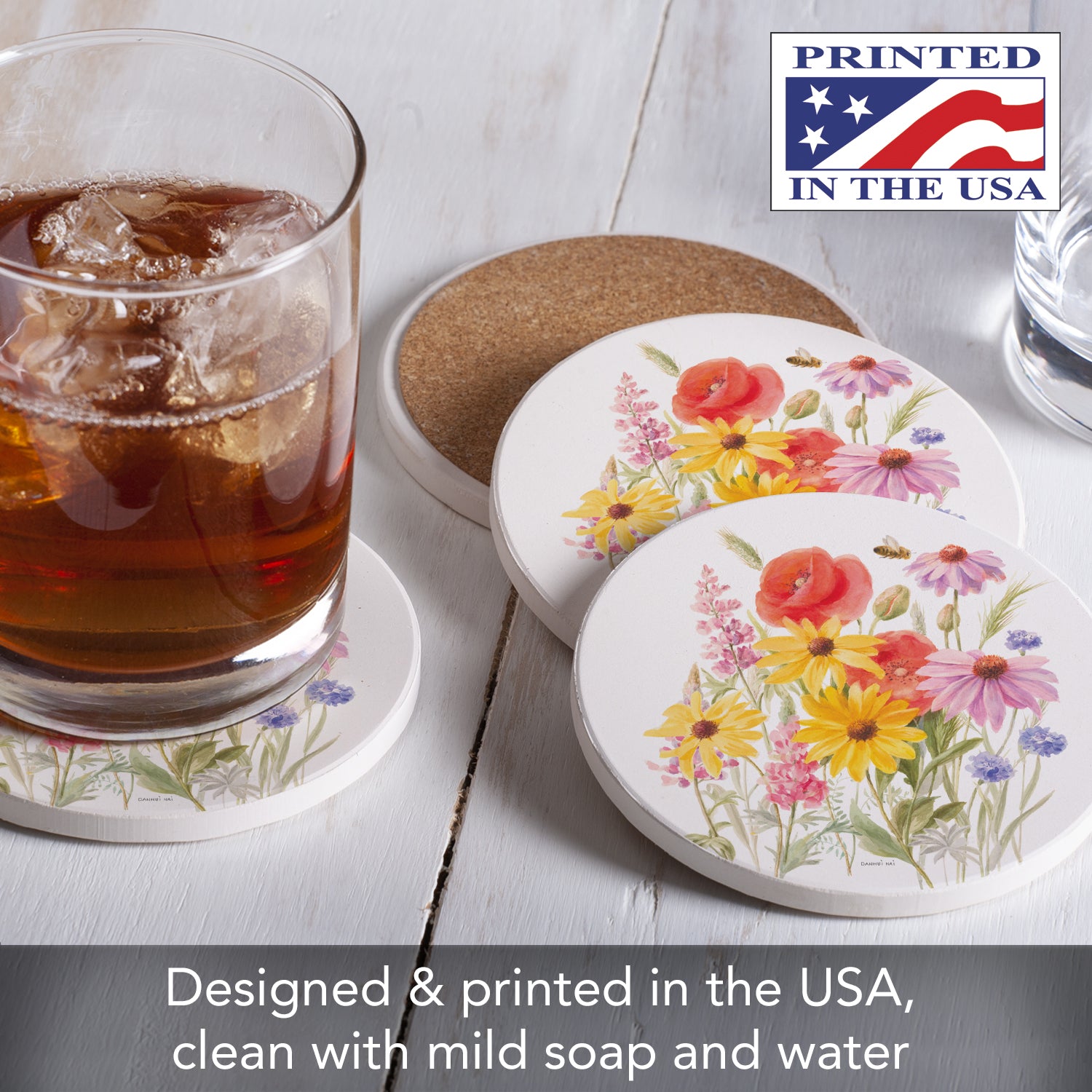 Thirstystone Wildflowers 4 Pack Round Absorbent Stone Coasters 4" Diameter Manufactured in The USA