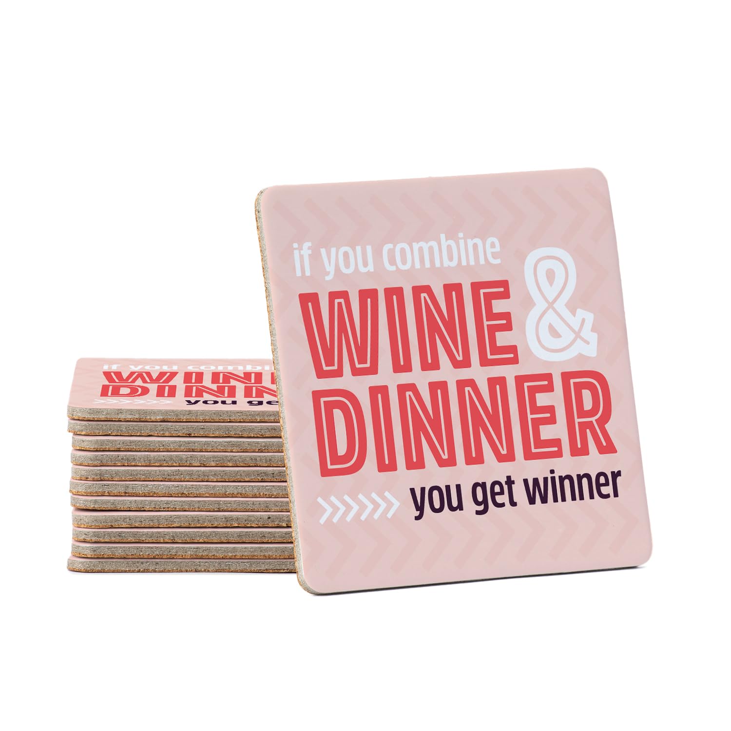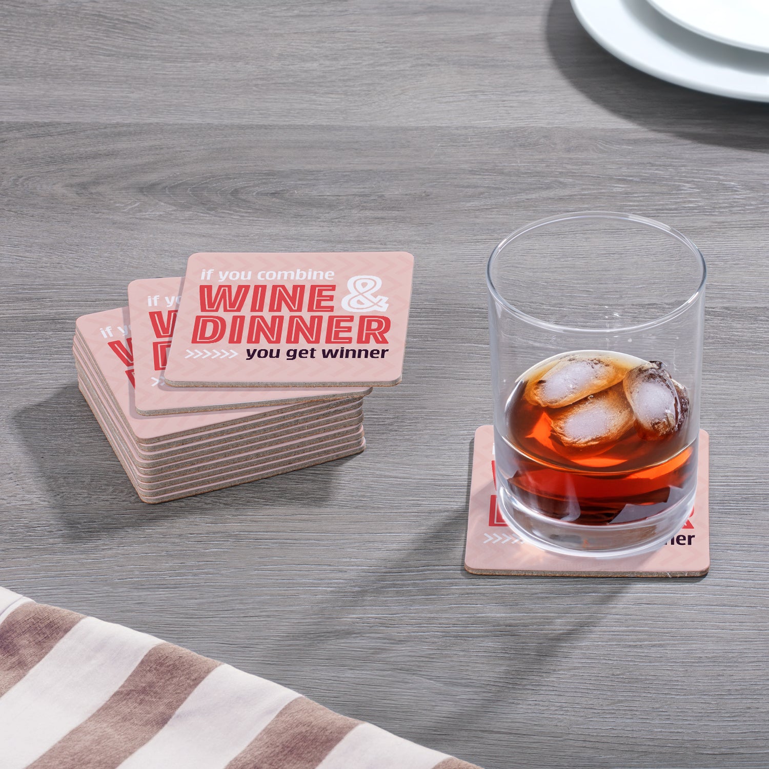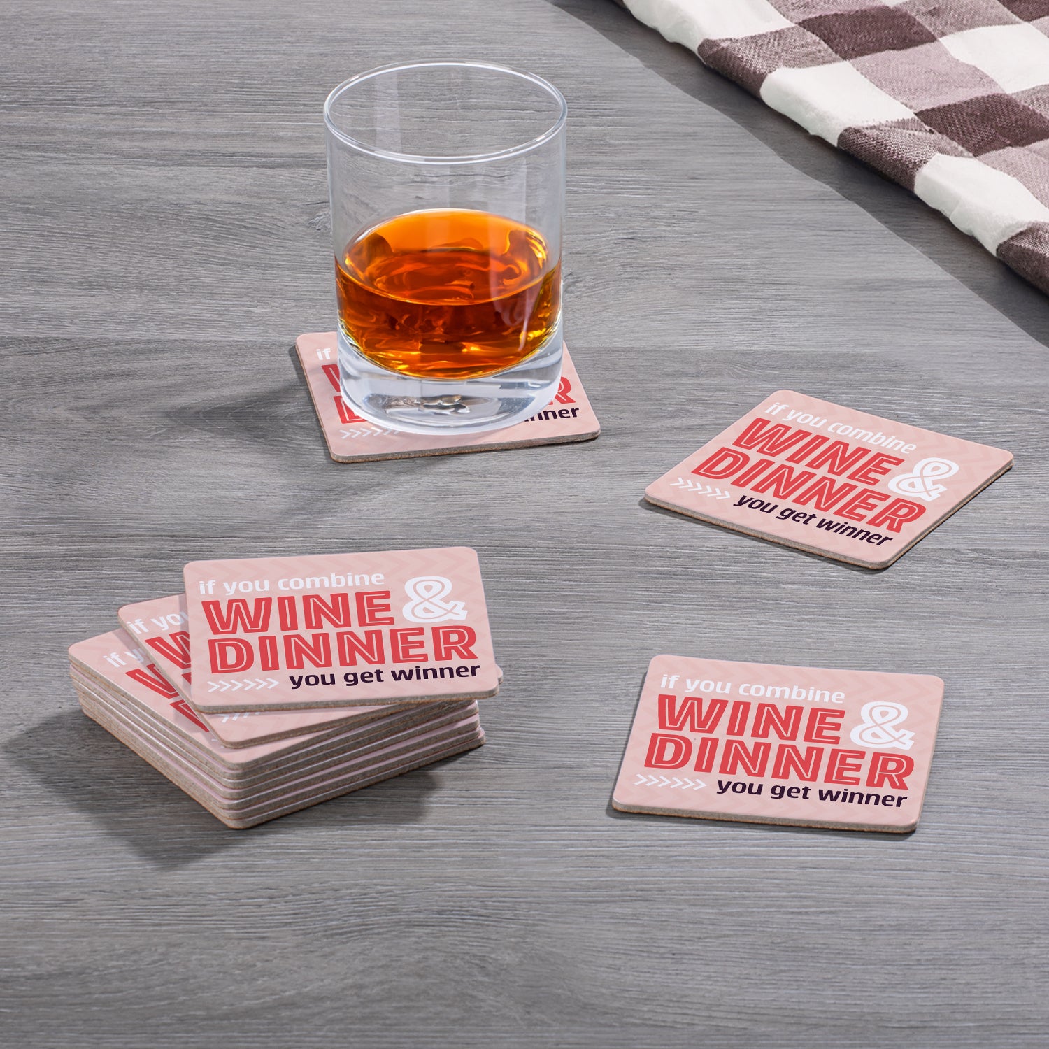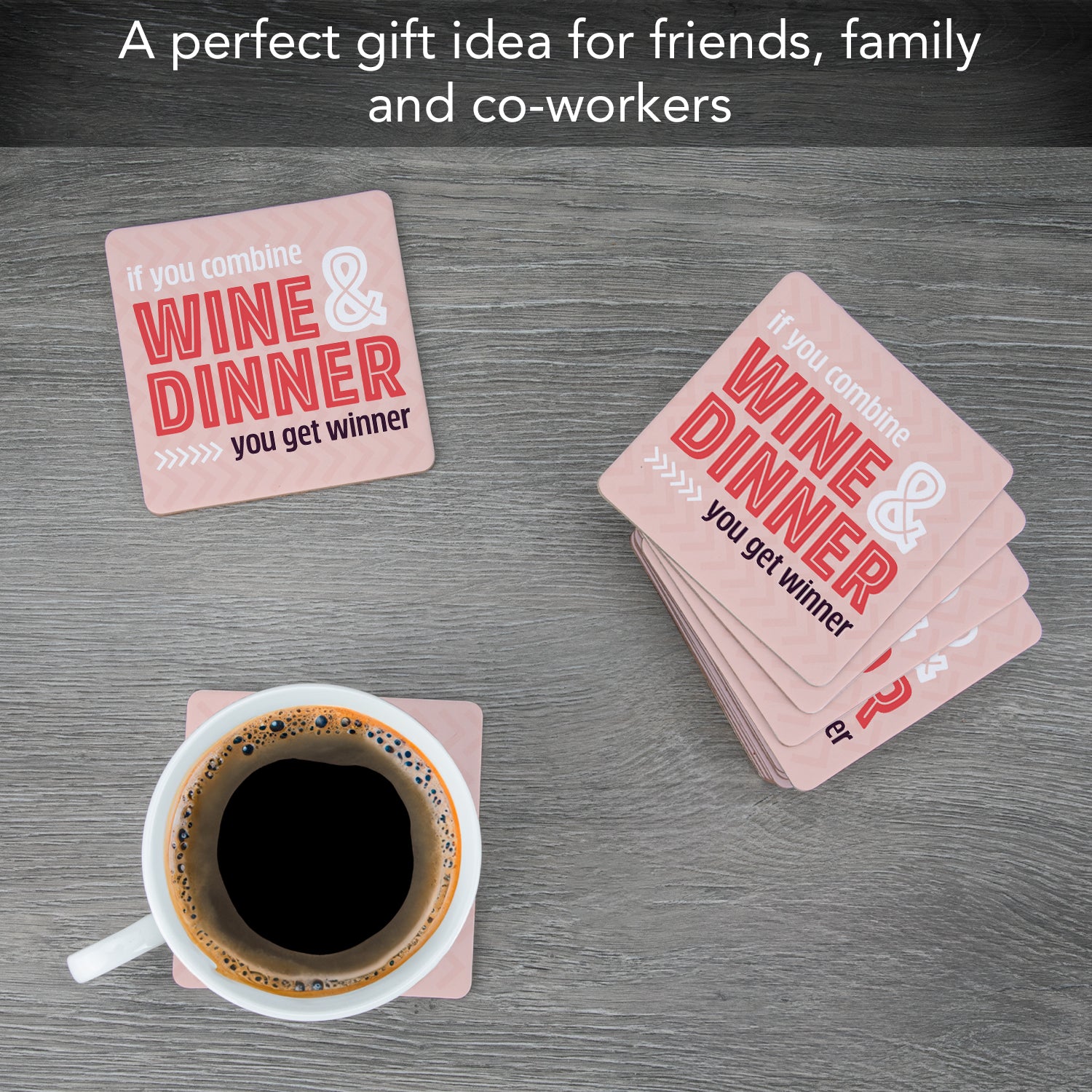 Thirstystone Wine & Dinner 12-Pack Cork Back Paper Bar Coasters Made in The USA Humourous Quotes Attractive Designs