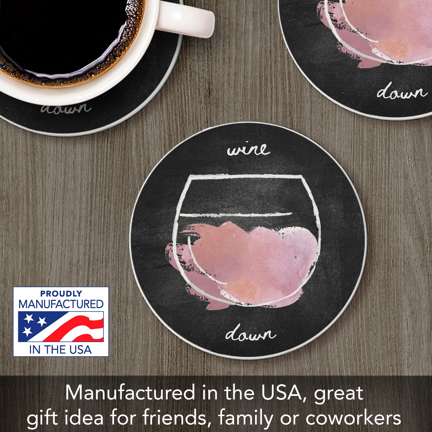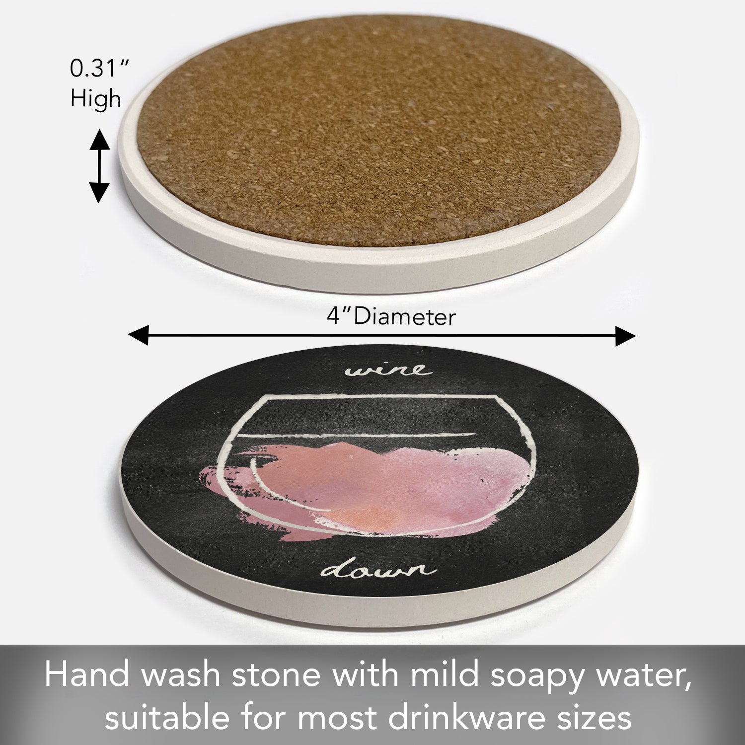 Thirstystone Wine Down Single Round Absorbent Stone Coaster with Protective Cork Backing Manufactured in The USA 4" Diameter