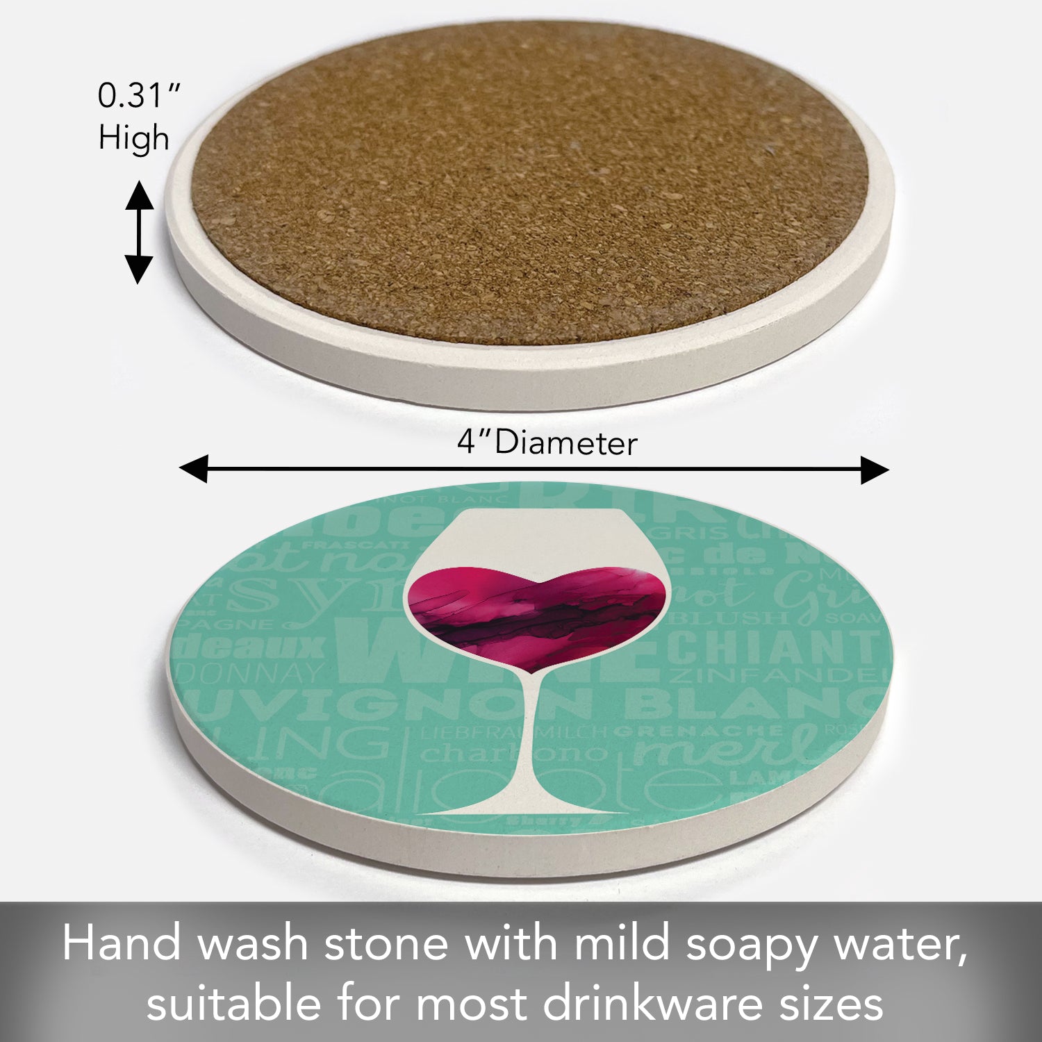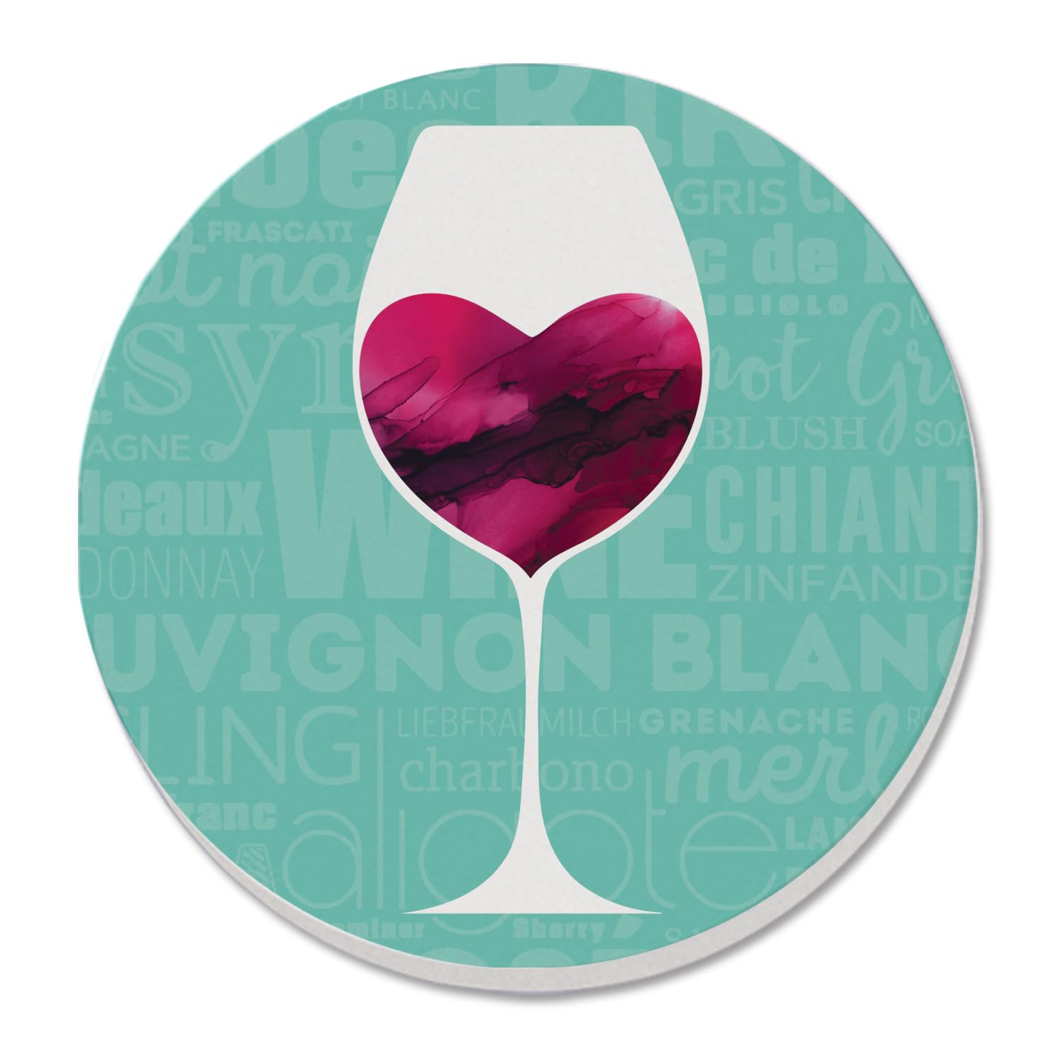 Thirstystone Wine Glass Heart Single Round Absorbent Stone Coaster with Protective Cork Backing Manufactured in The USA 4" Diameter