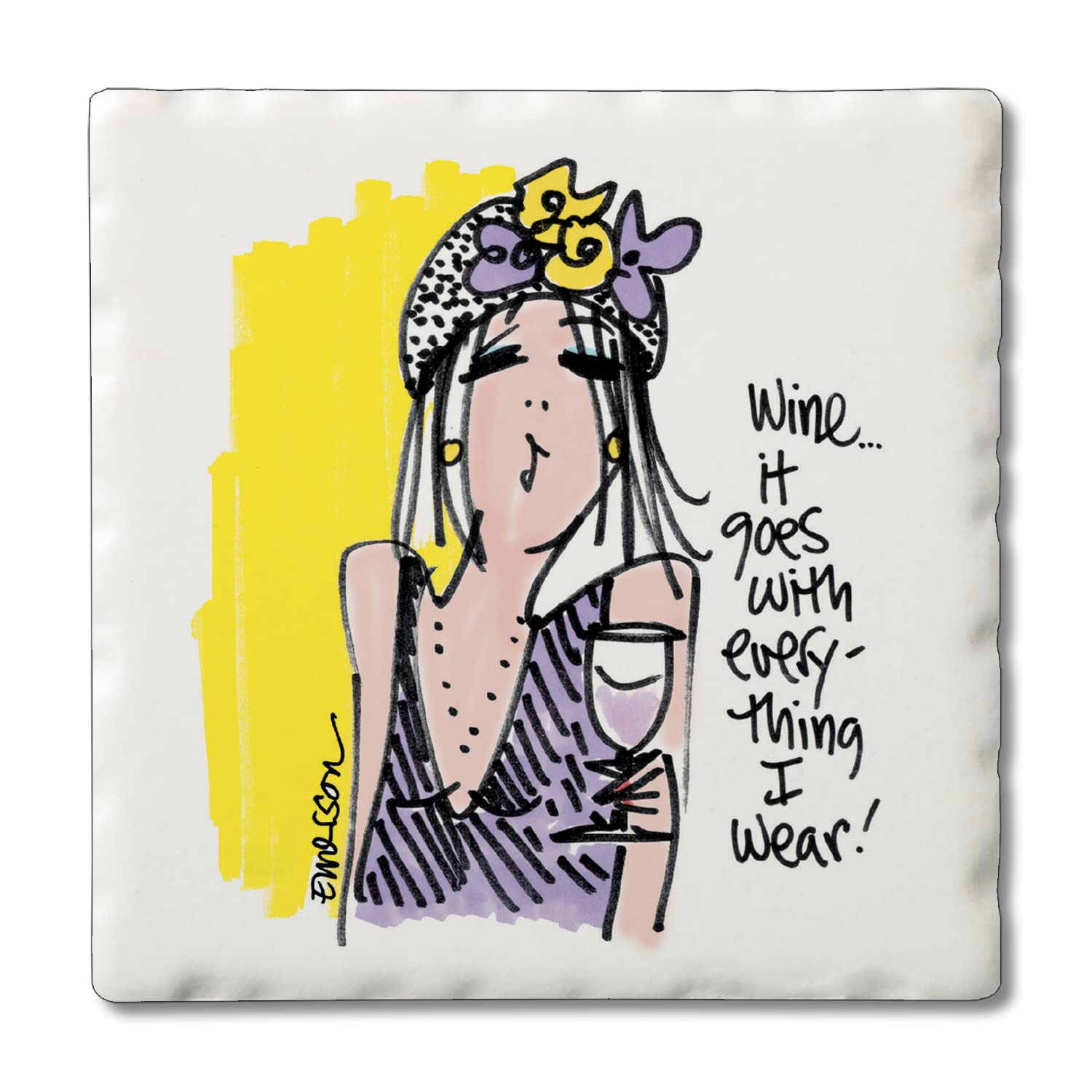 Thirstystone Wine with Everything Single Tumbled Tile Coaster Manufactured in The USA Humorous, Stylish, Single Coasters Allow You to Create Own Set