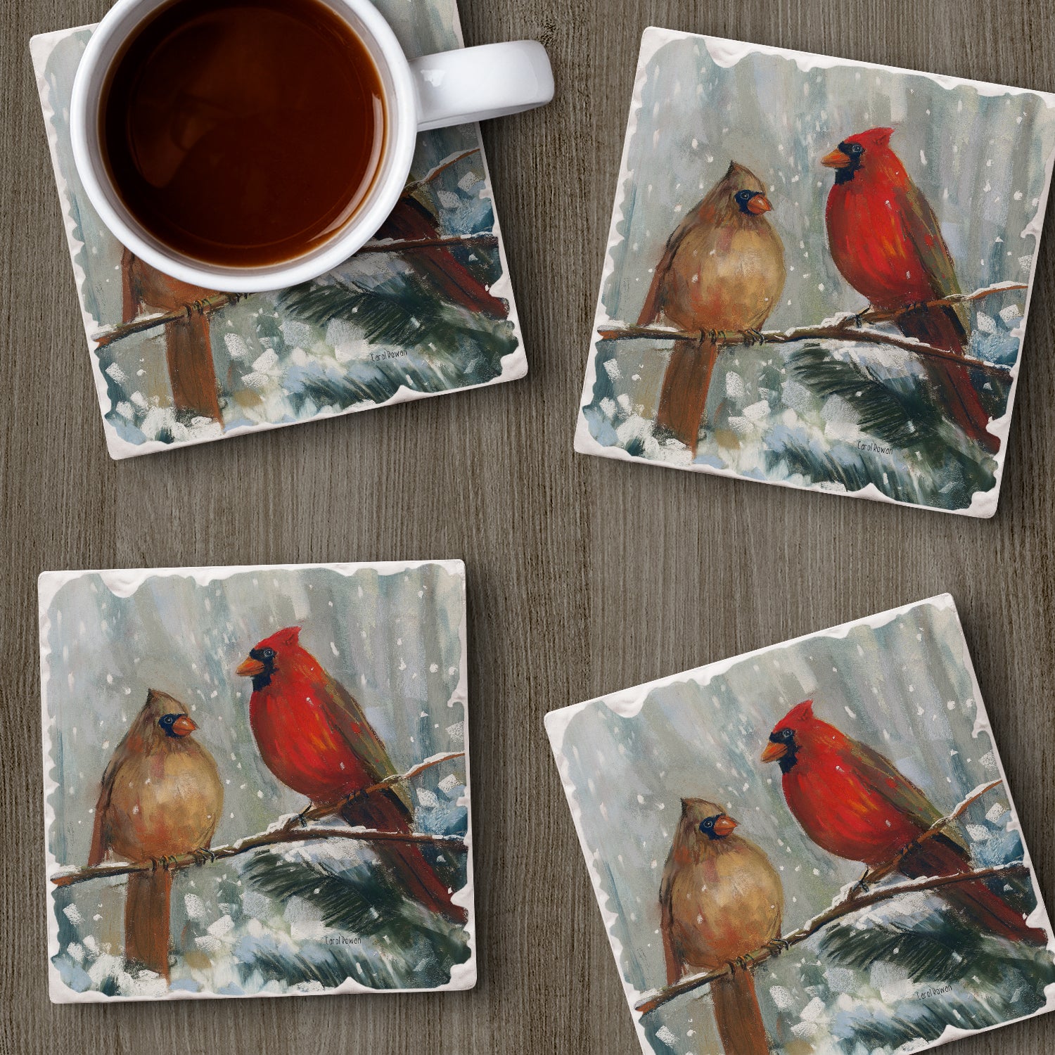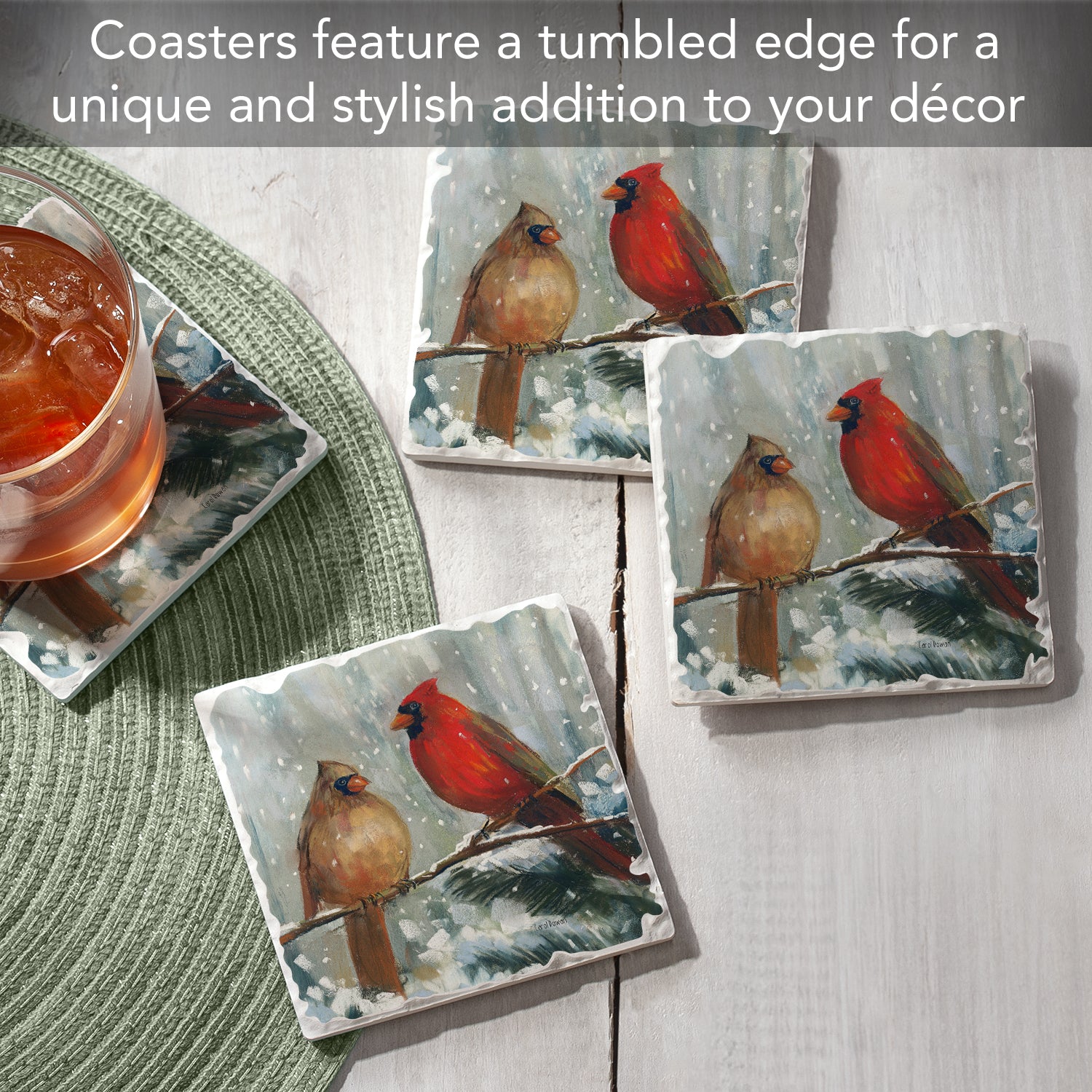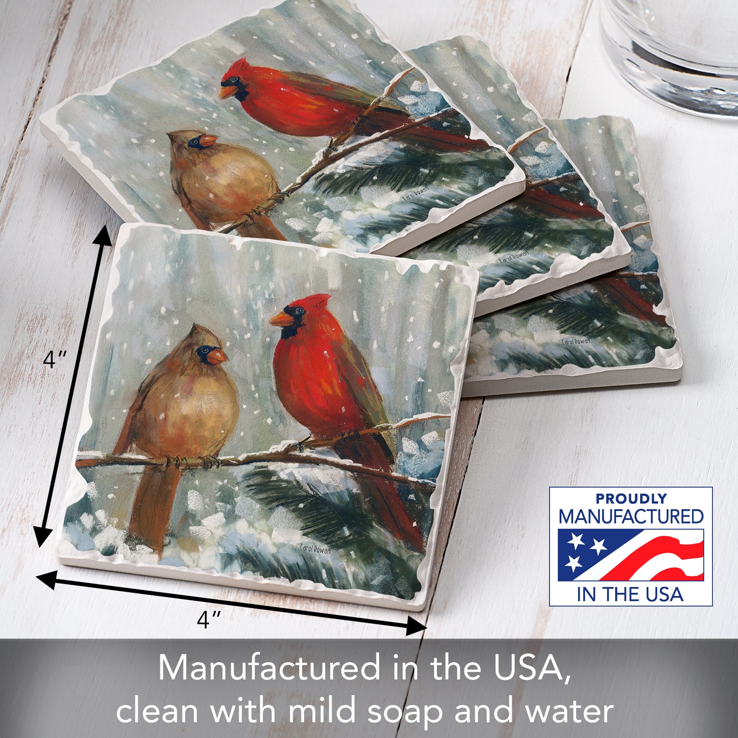 Thirstystone Winter Birds 4 Pack Assorted Tumbled Tile Stone Coasters with Protective Cork Backing 4" Square Manufactured in The USA