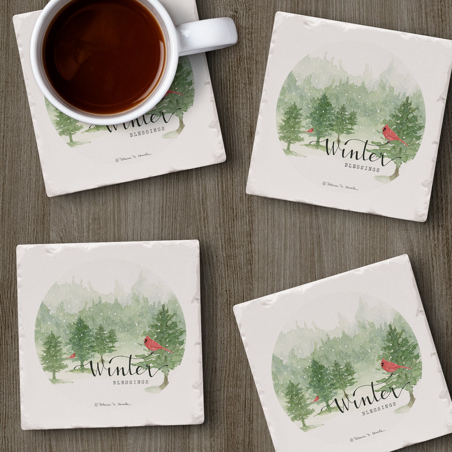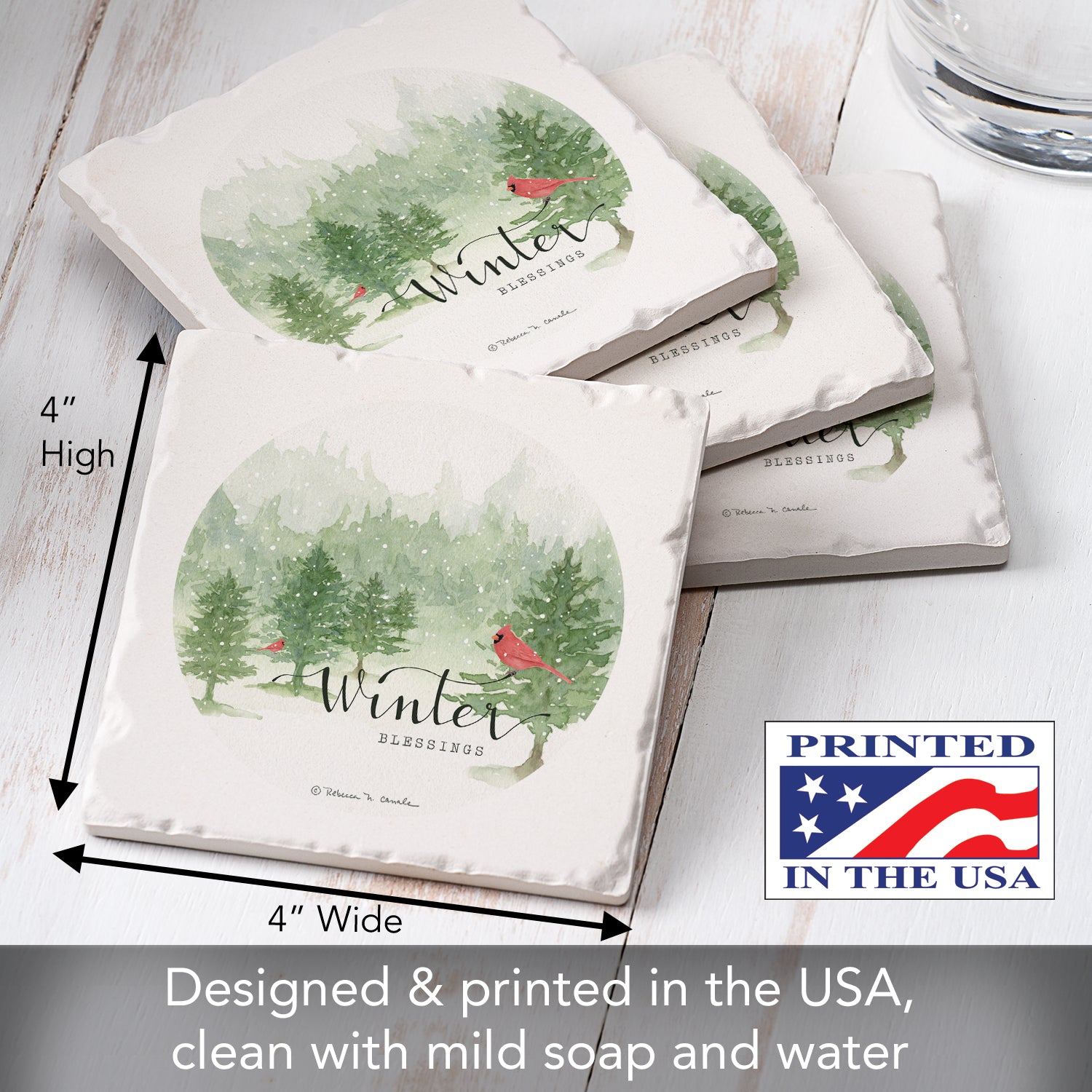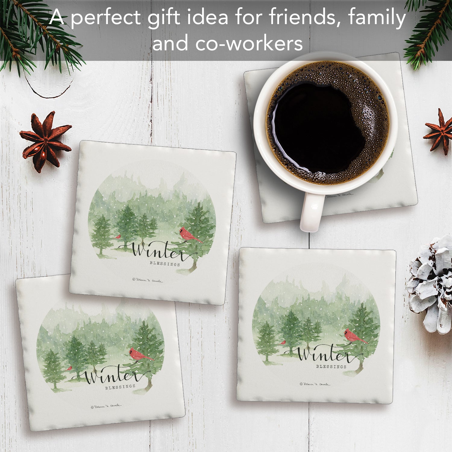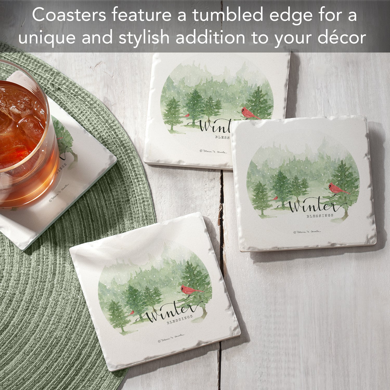 Thirstystone Winter Blessings 4 Pack Tumbled Tile Stone Coasters 4" Square Manufactured in the USA