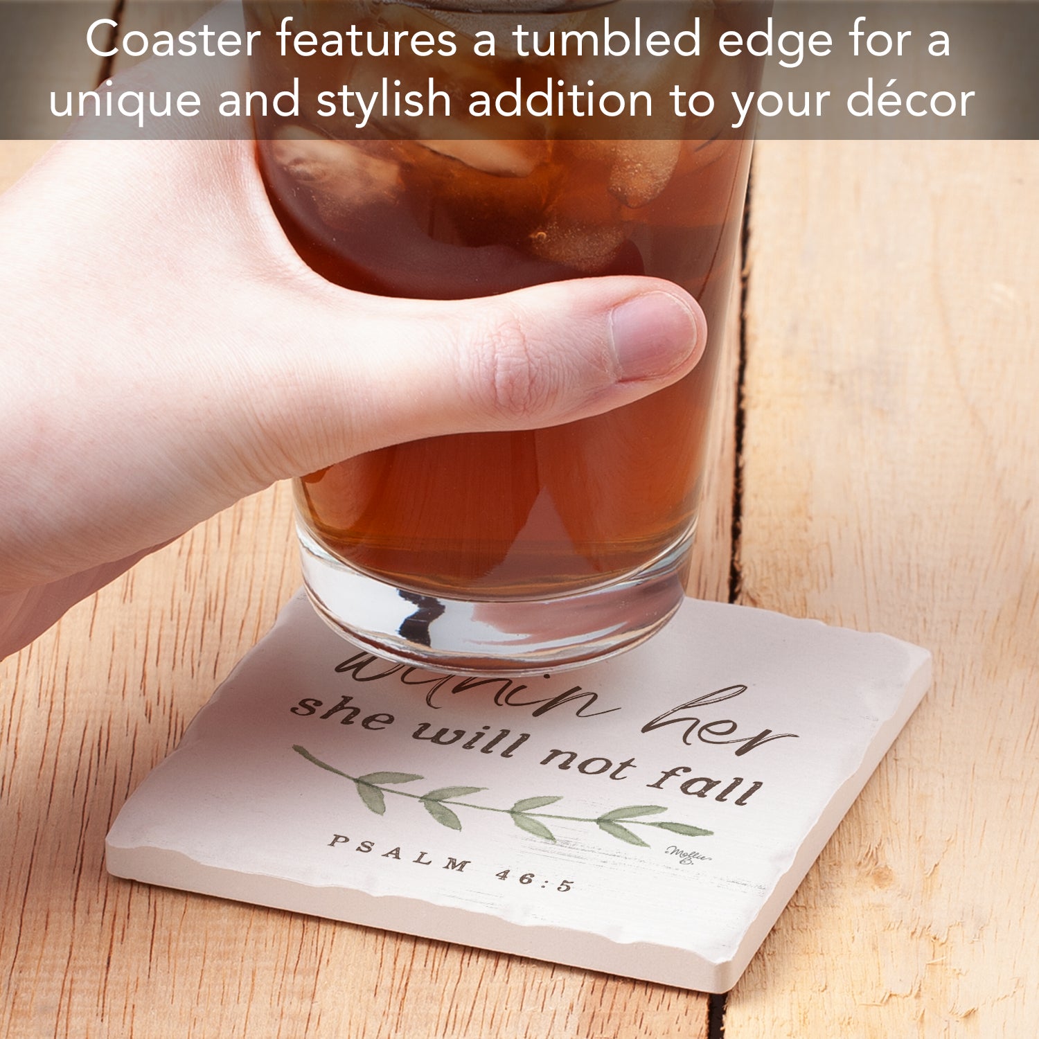 - TUMBLED TILE EDGE/CORK BACKING-Coasters feature a Tumbled Tile edge giving the Coaster a classic but rustic appearance. Features a cork backing to protect your furniture, countertop or desktop from scratches and stains.