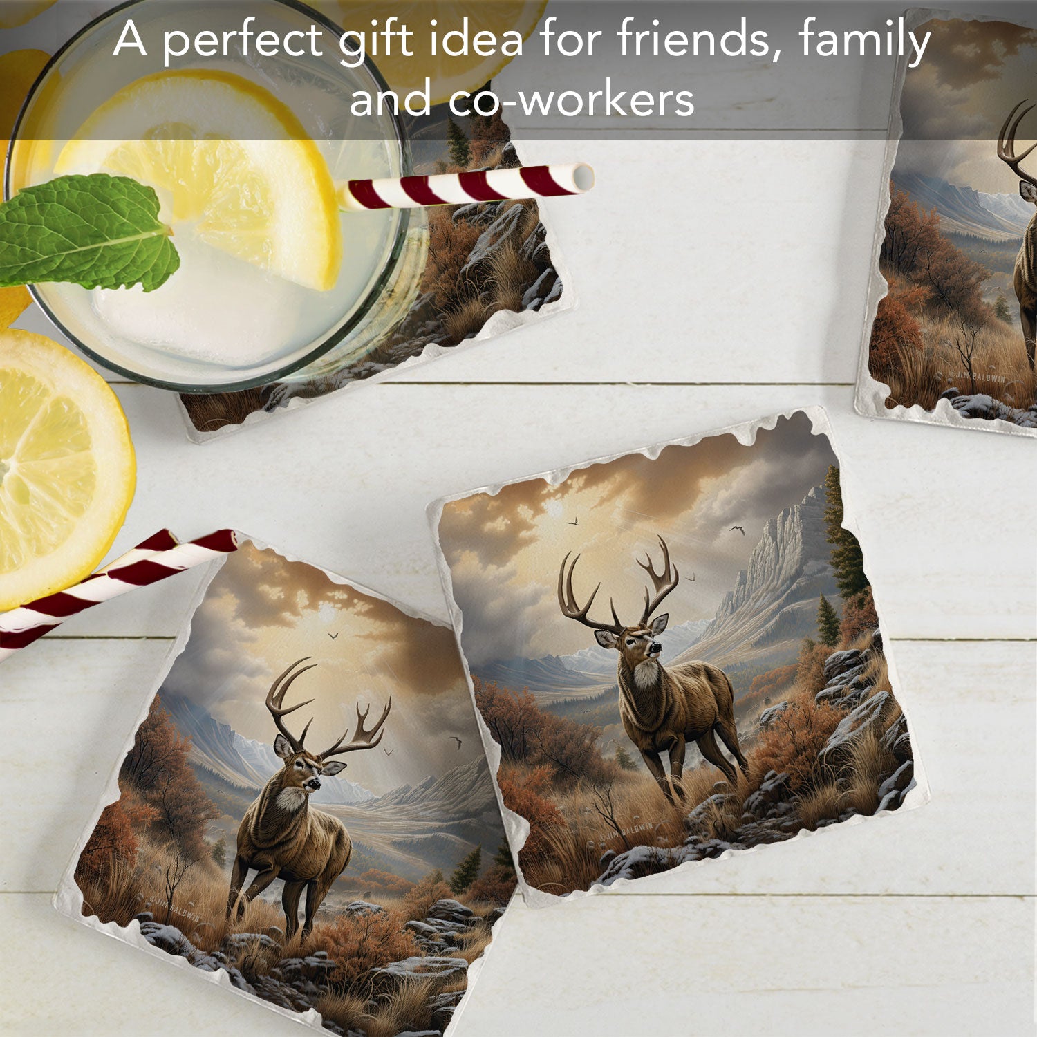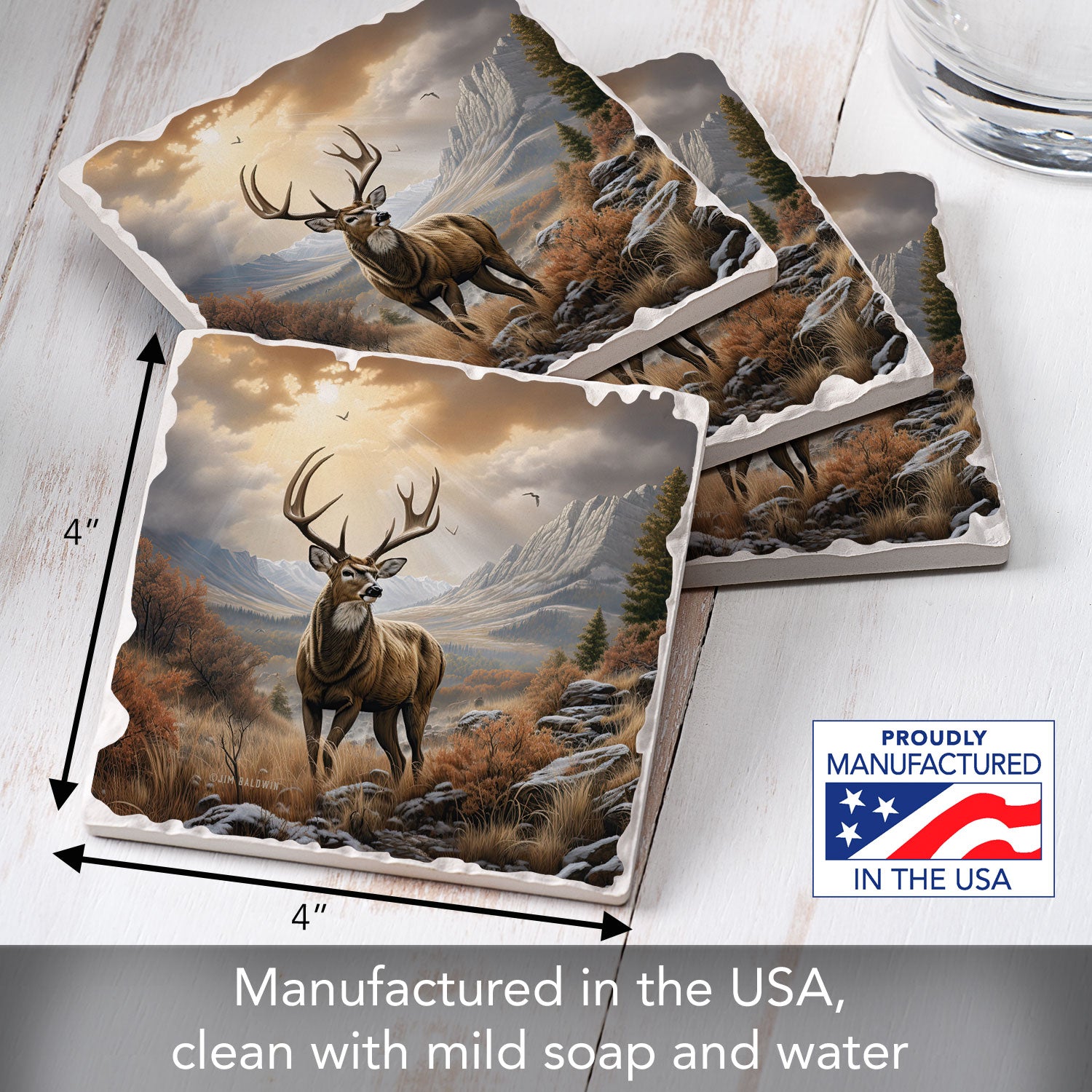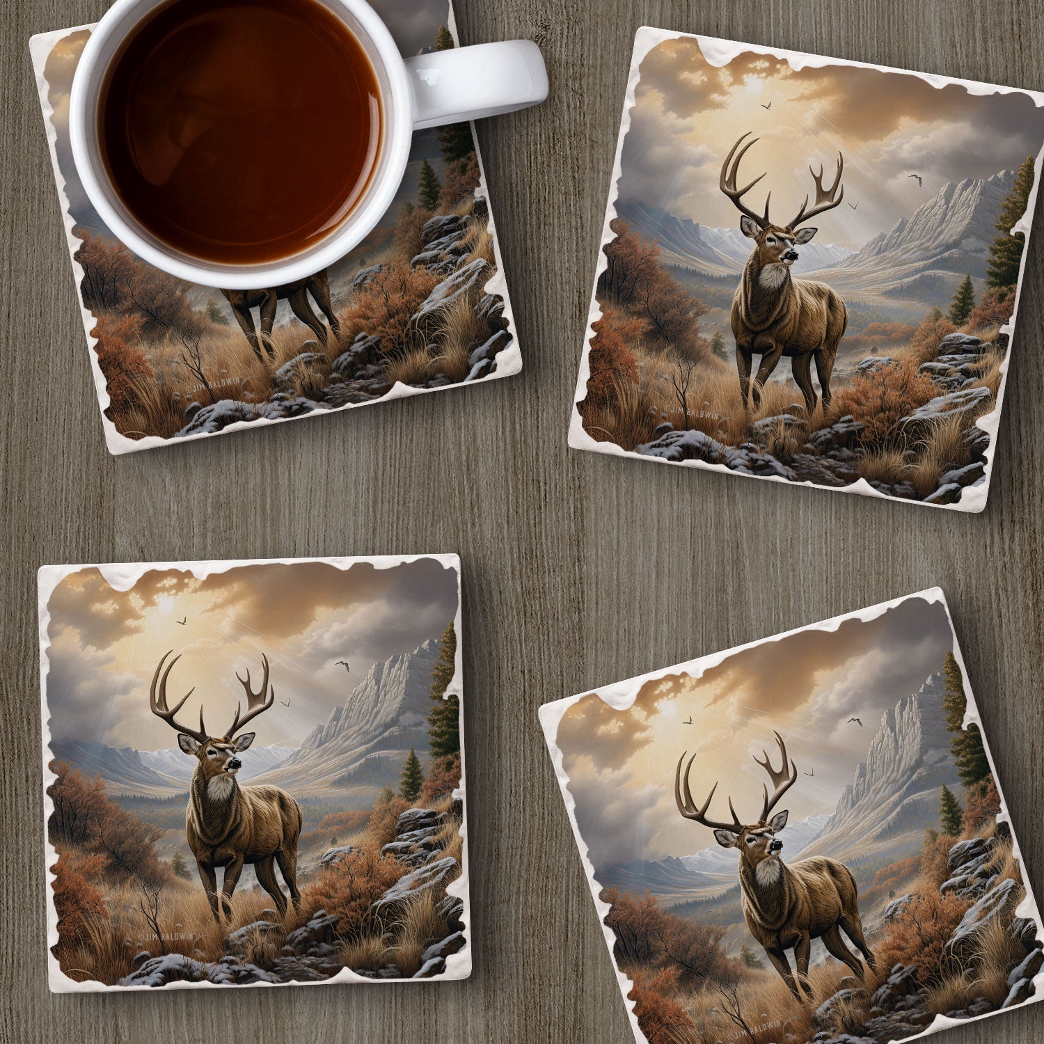 Thirstystone Woodland Deer 4 Pack Tumbled Tile Stone Coasters 4" Square Manufactured in the USA