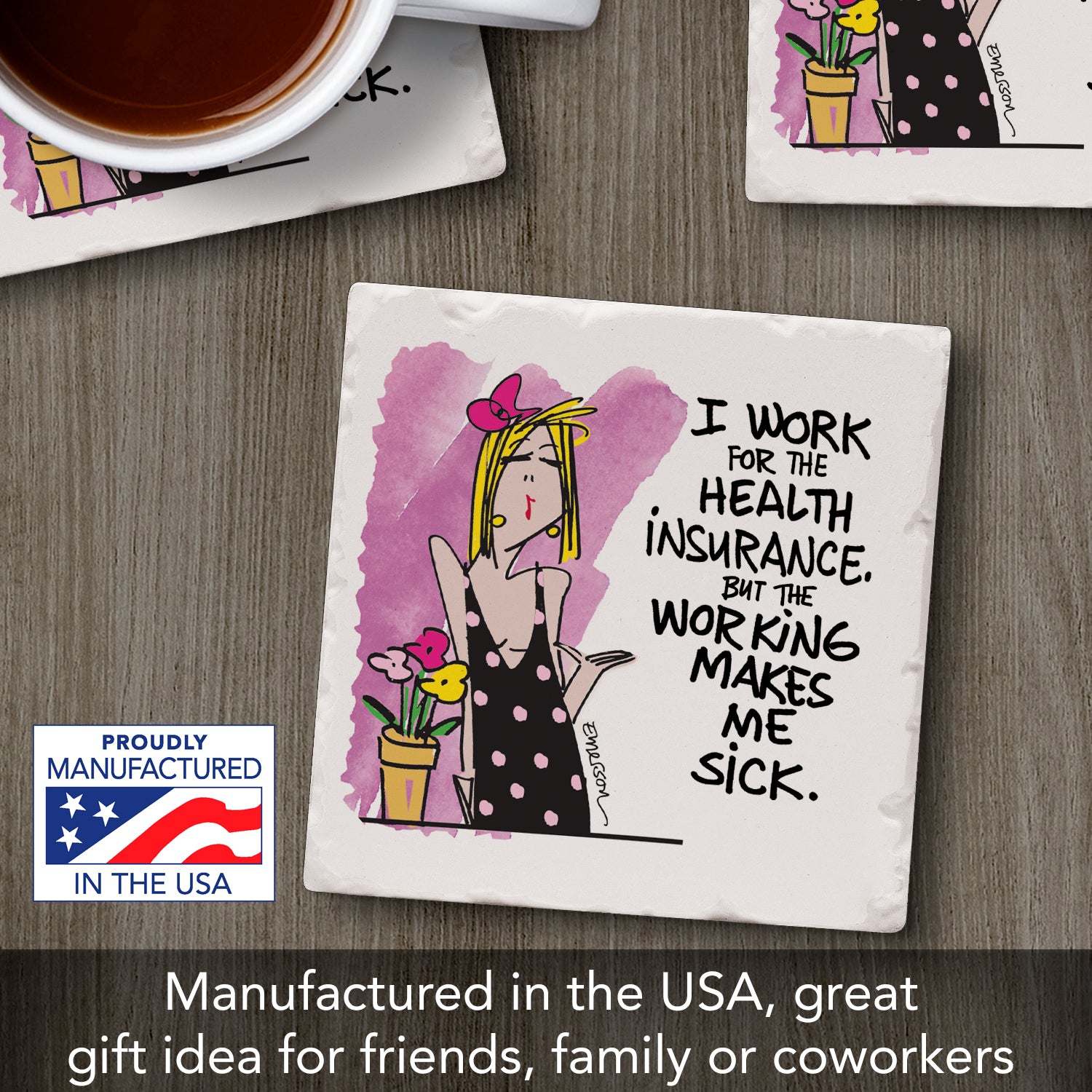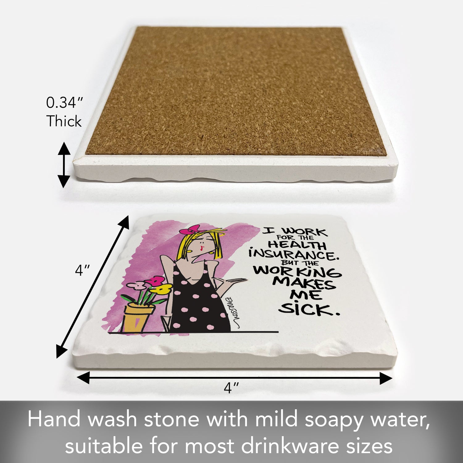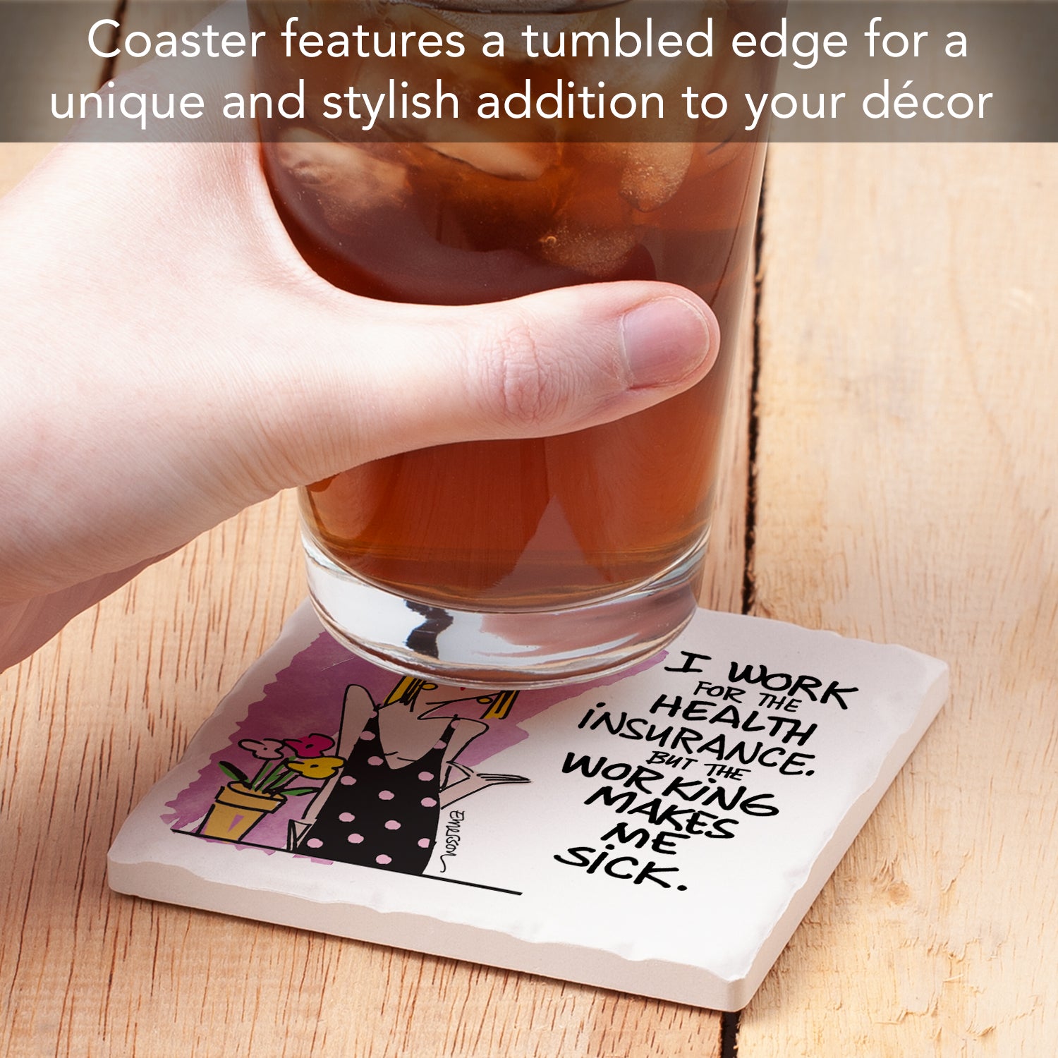 Thirstystone Working Makes Me Sick Single Tumbled Tile Stone Coaster Manufactured in The USA Humorous, Stylish, Single Coasters Allow You to Create Own Set