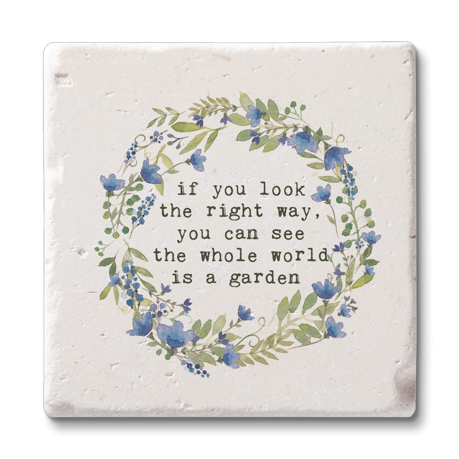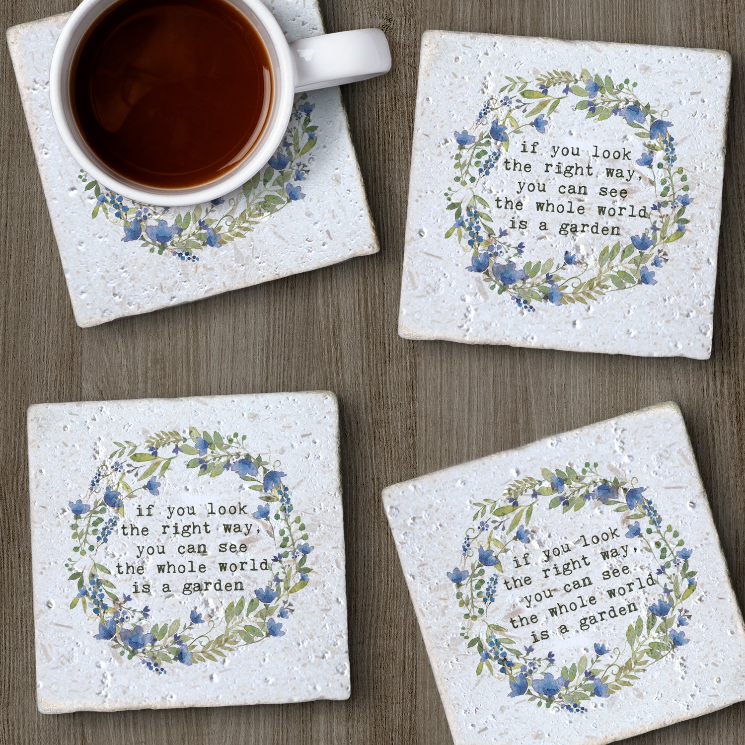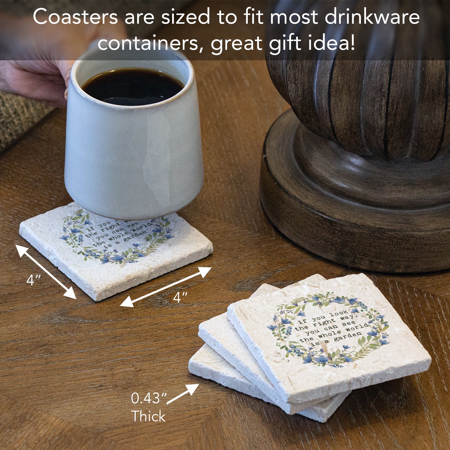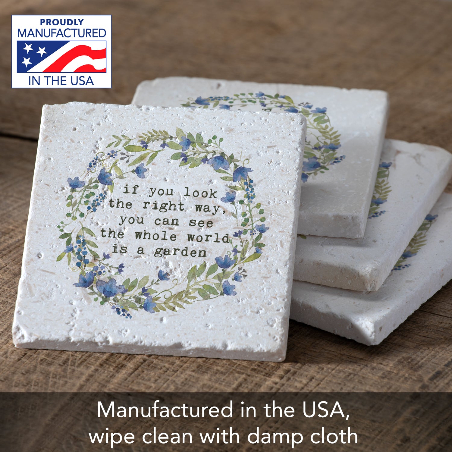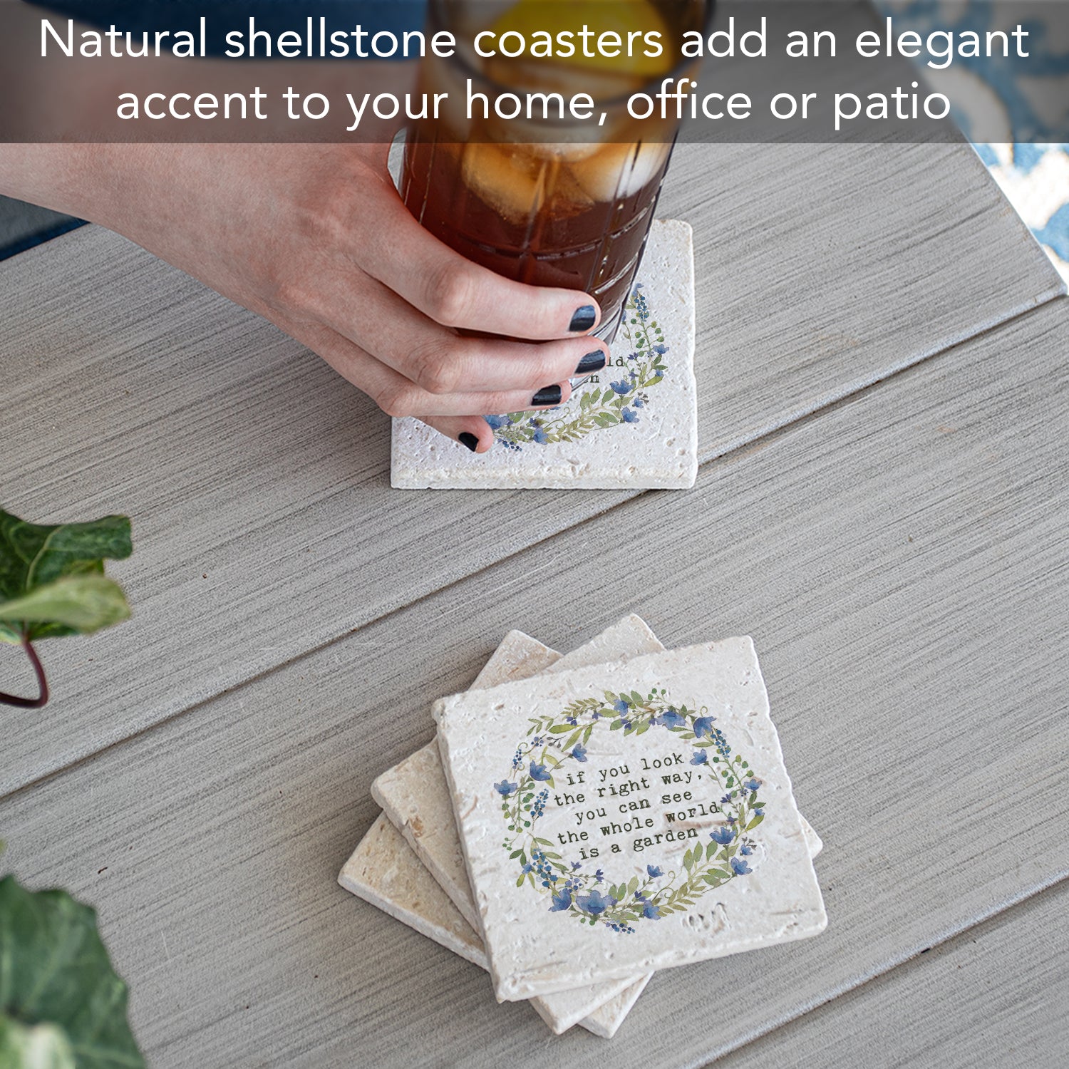 Thirstystone World is A Garden 4 Pack Natural Shell Stone Absorbent Coasters Manufactured in the USA