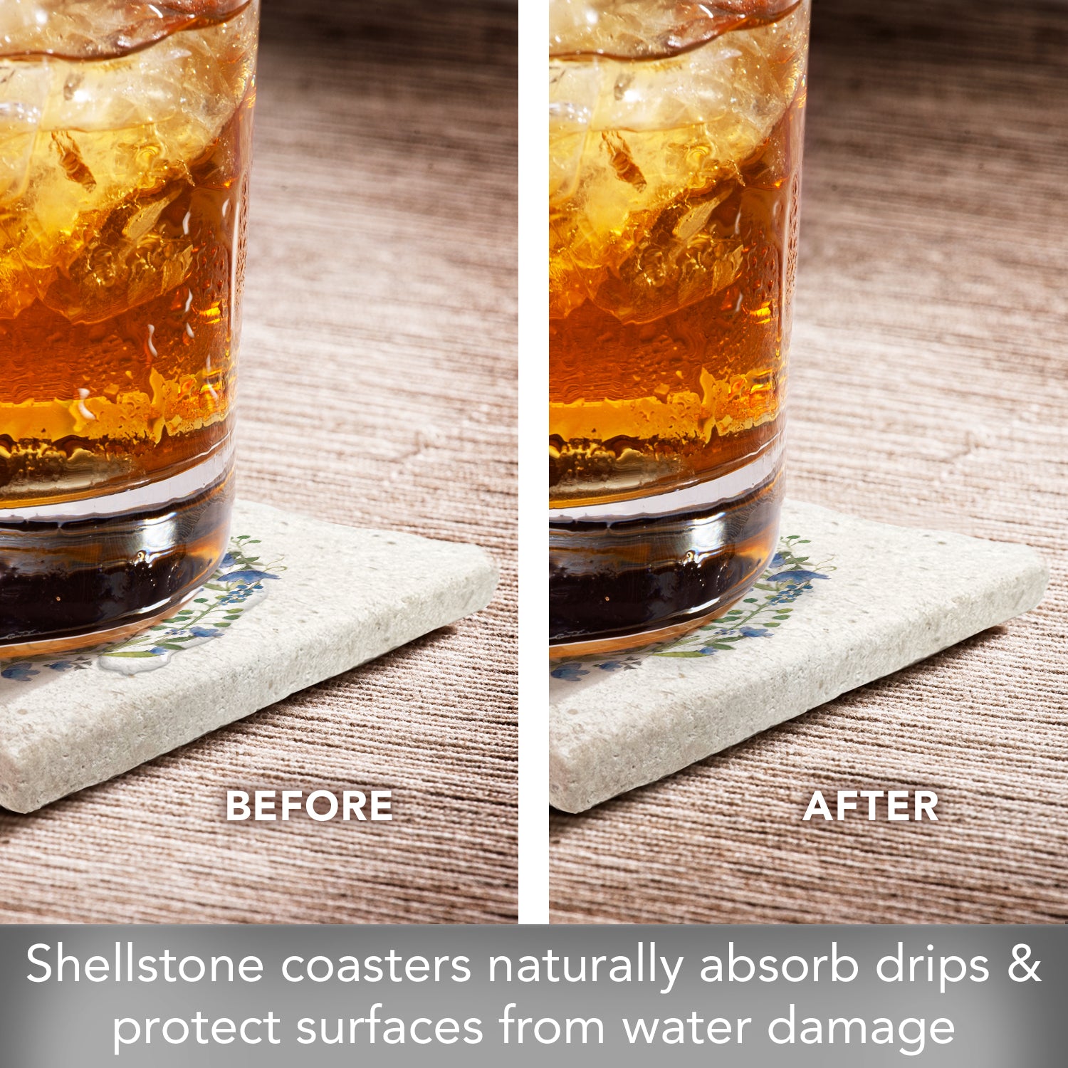 AUTHENTIC SHELLSTONE- Each Coaster is made from authentic natural Shell Stone Shell Stone is known as a type of limestone, but density of the stone is like Marble. Shell Stone is strong and stays cool to the touch.