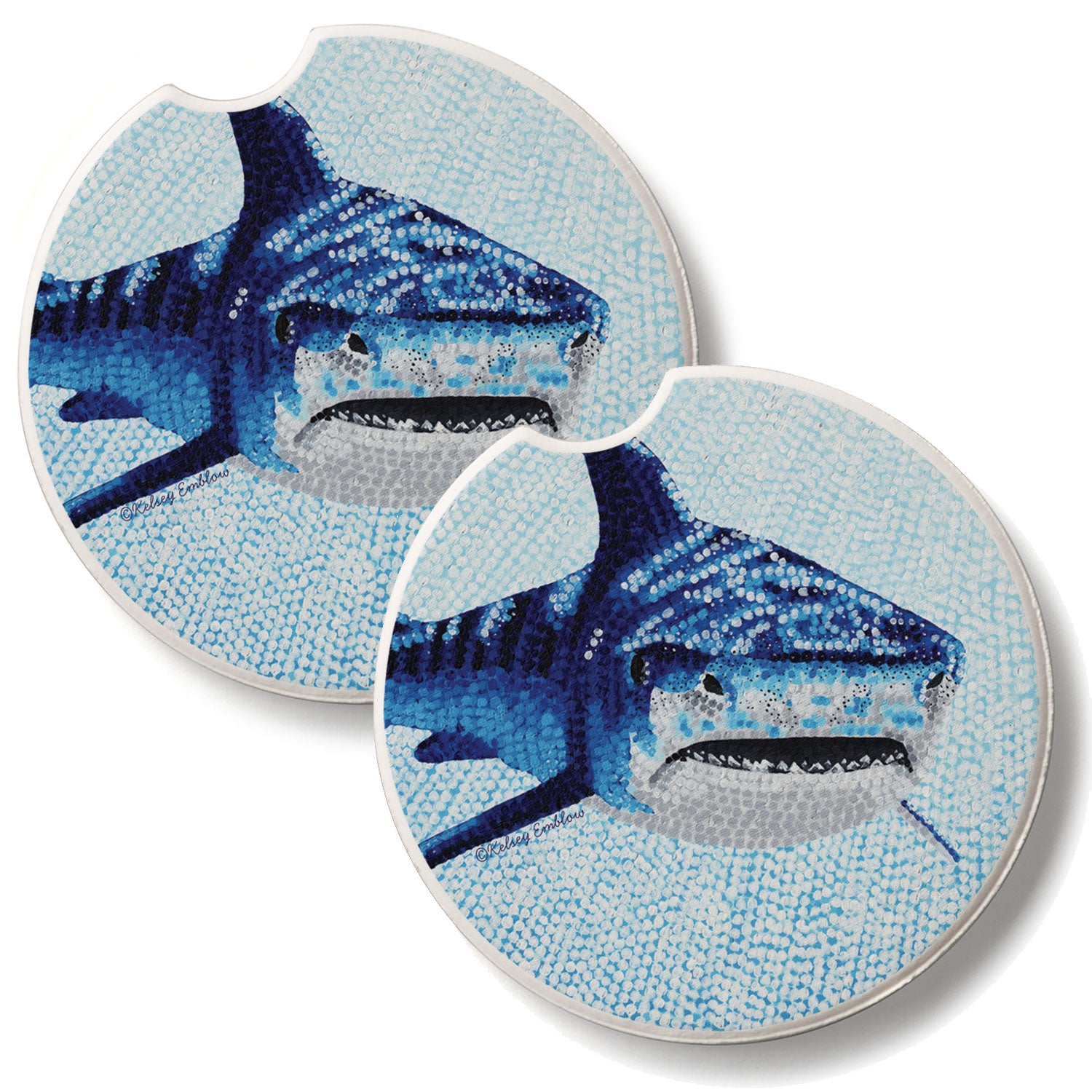 Tiger Shark 2 Pack Absorbent Stone Car Coasters 2.6" Manufactured in the USA
