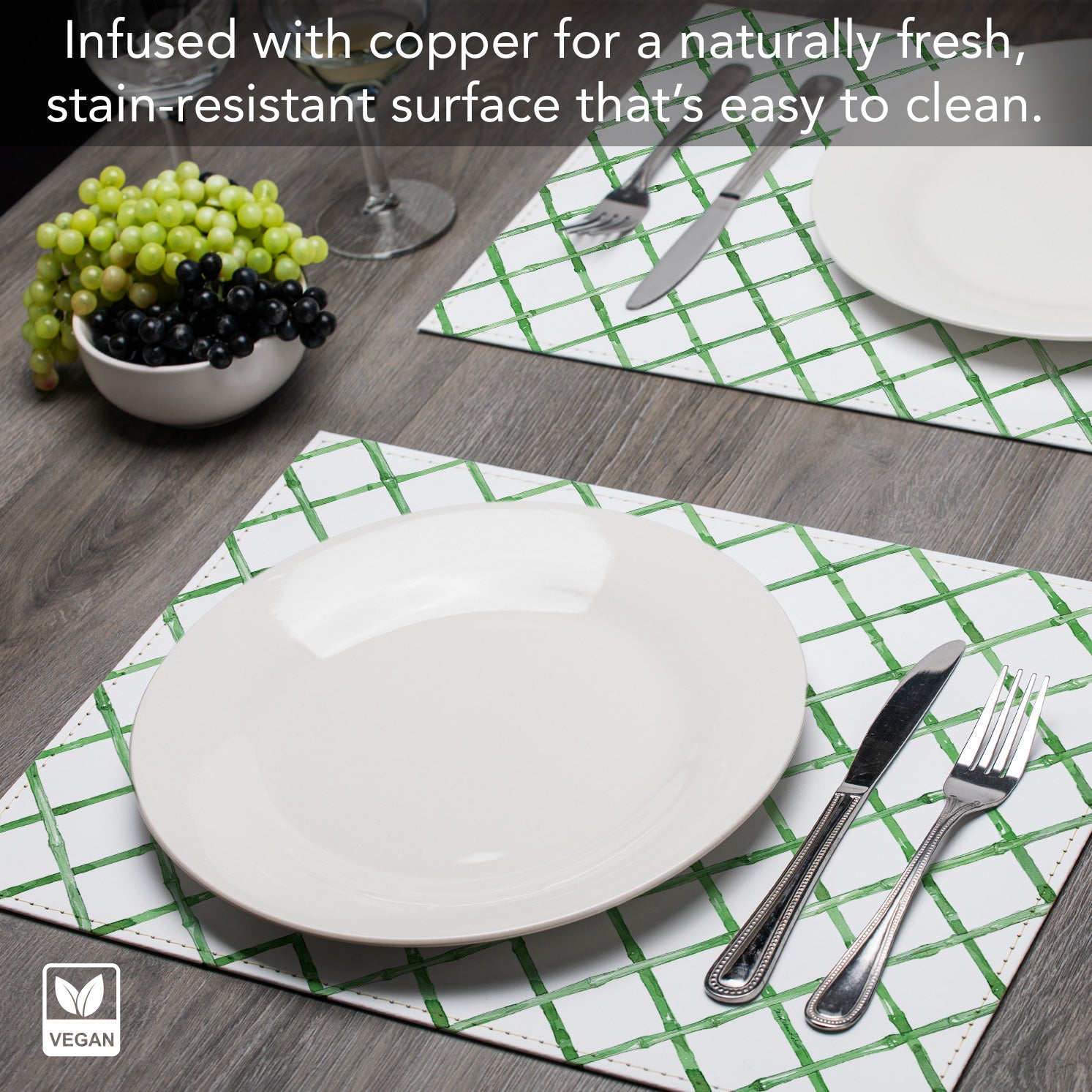 Trellis Luxurious Vegan Leather Placemat 4 Pack Look and Feel of Genuine Leather Infused with Copper