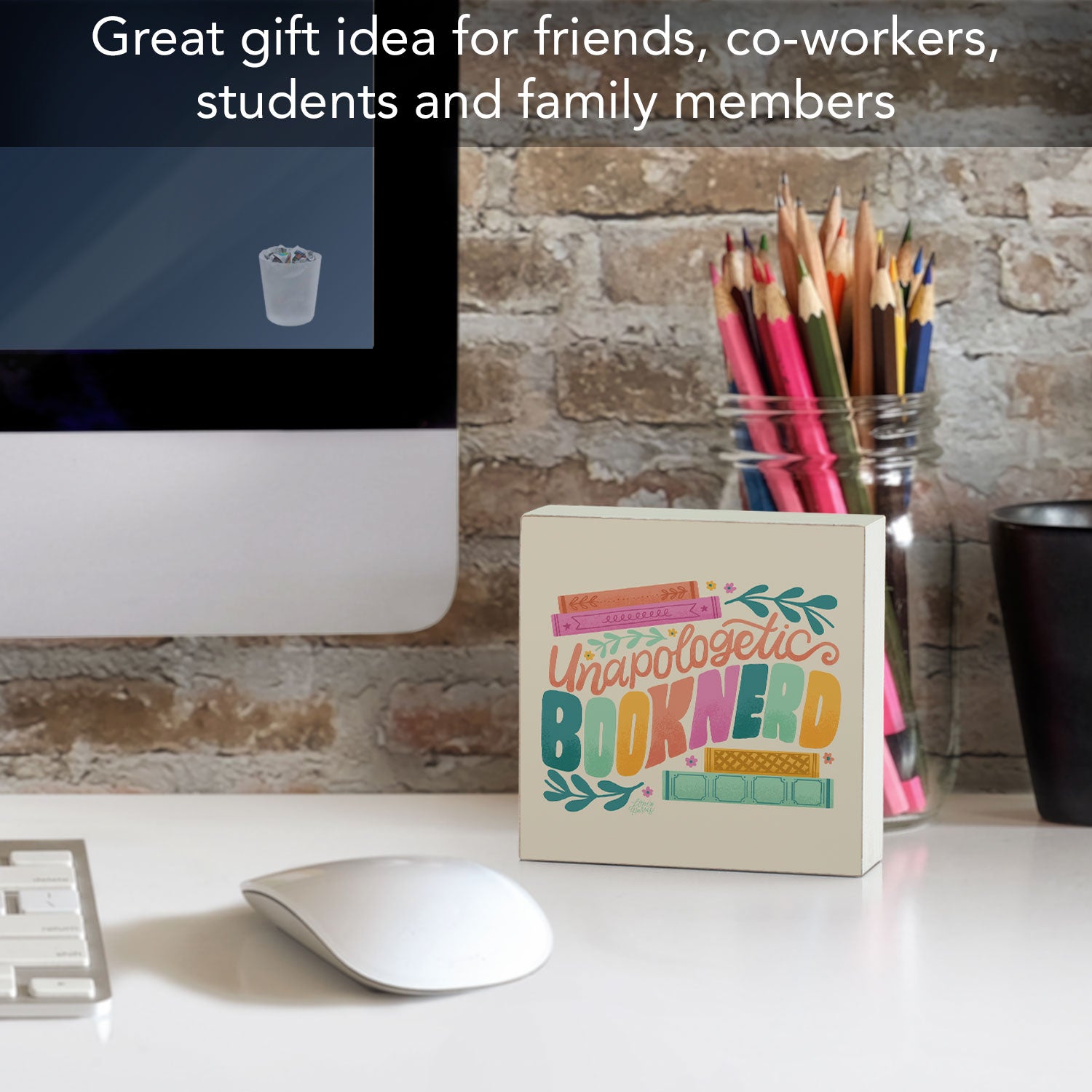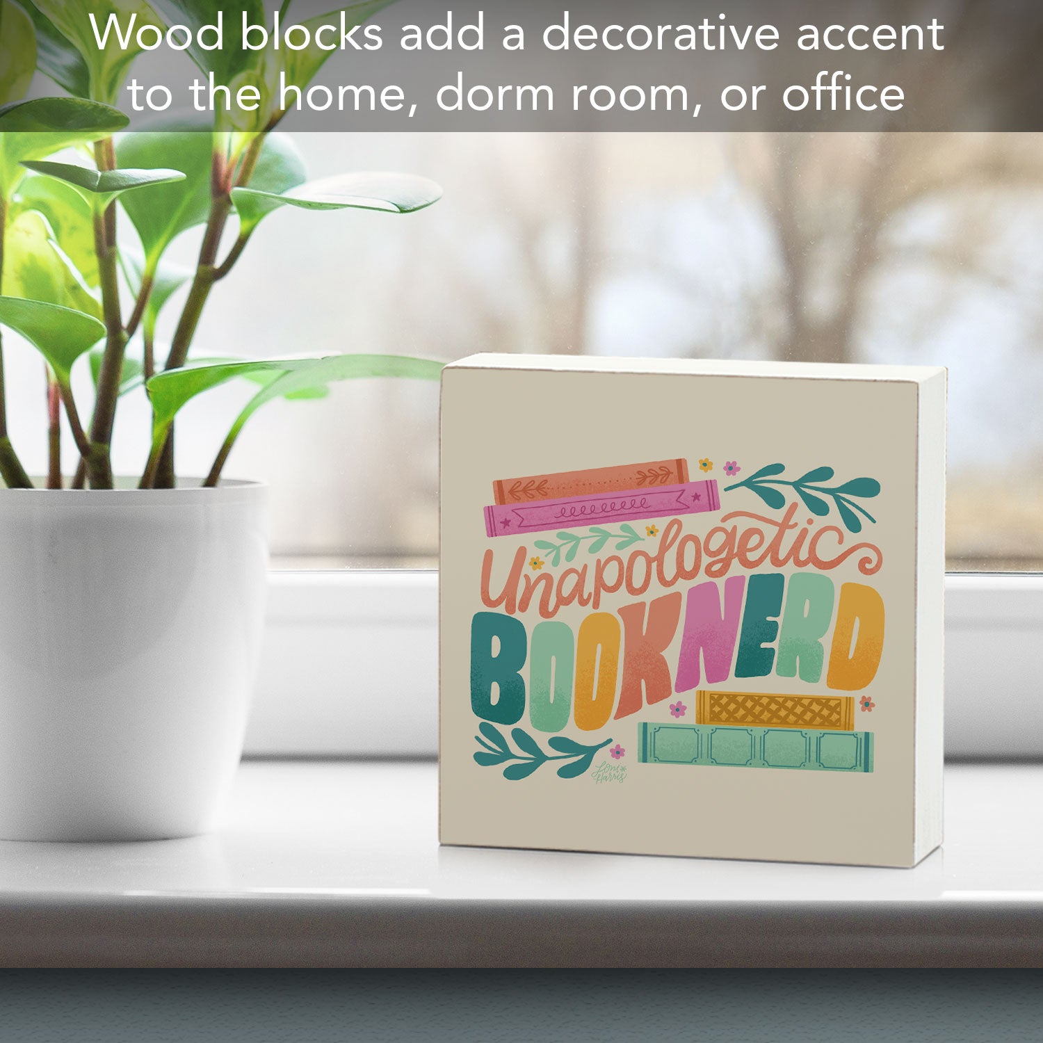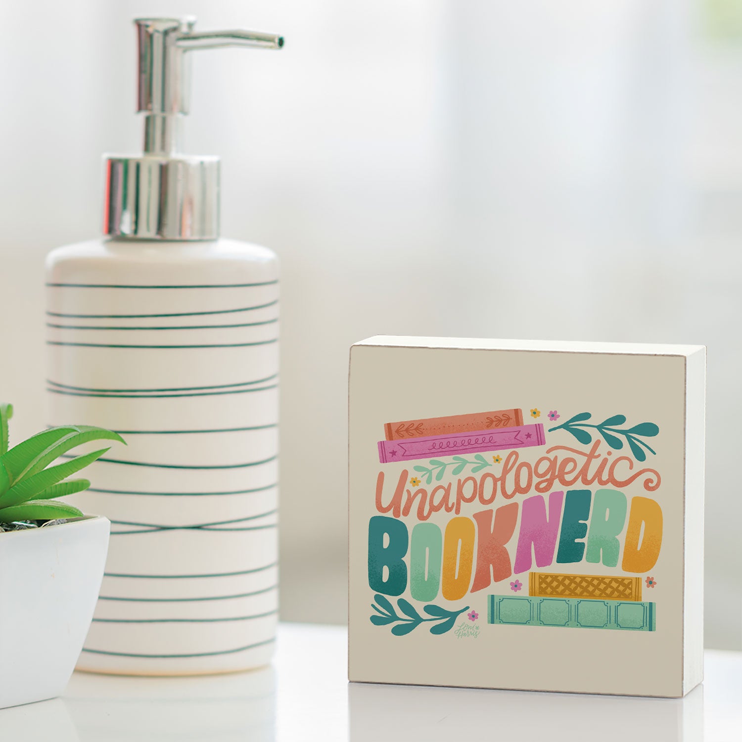 Unapologetic Book Nerd Freestanding Solid Wood Block Sign Made in the USA 3.75” Square