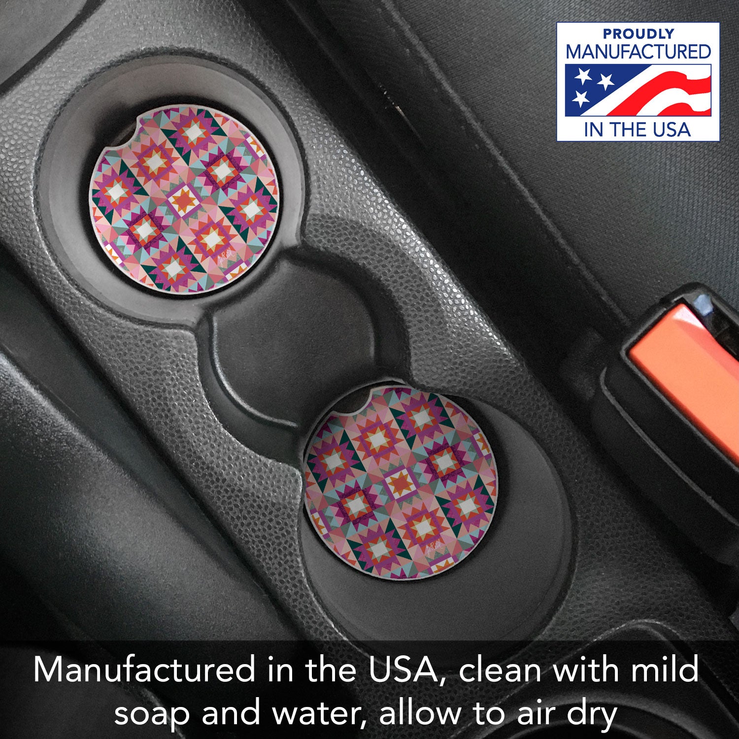 Vintage Patchwork 2 Pack Absorbent Stone Car Coasters 2.6" Manufactured in the USA