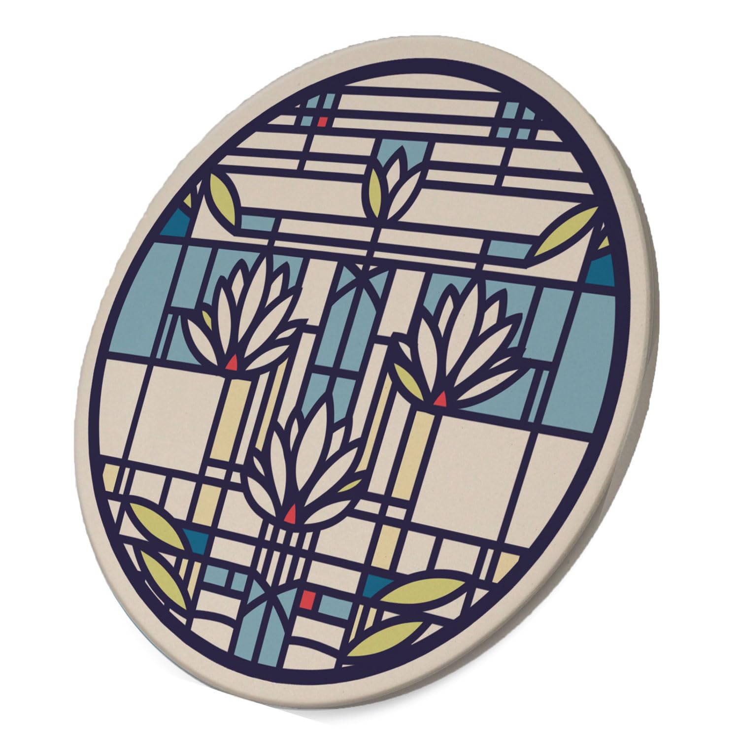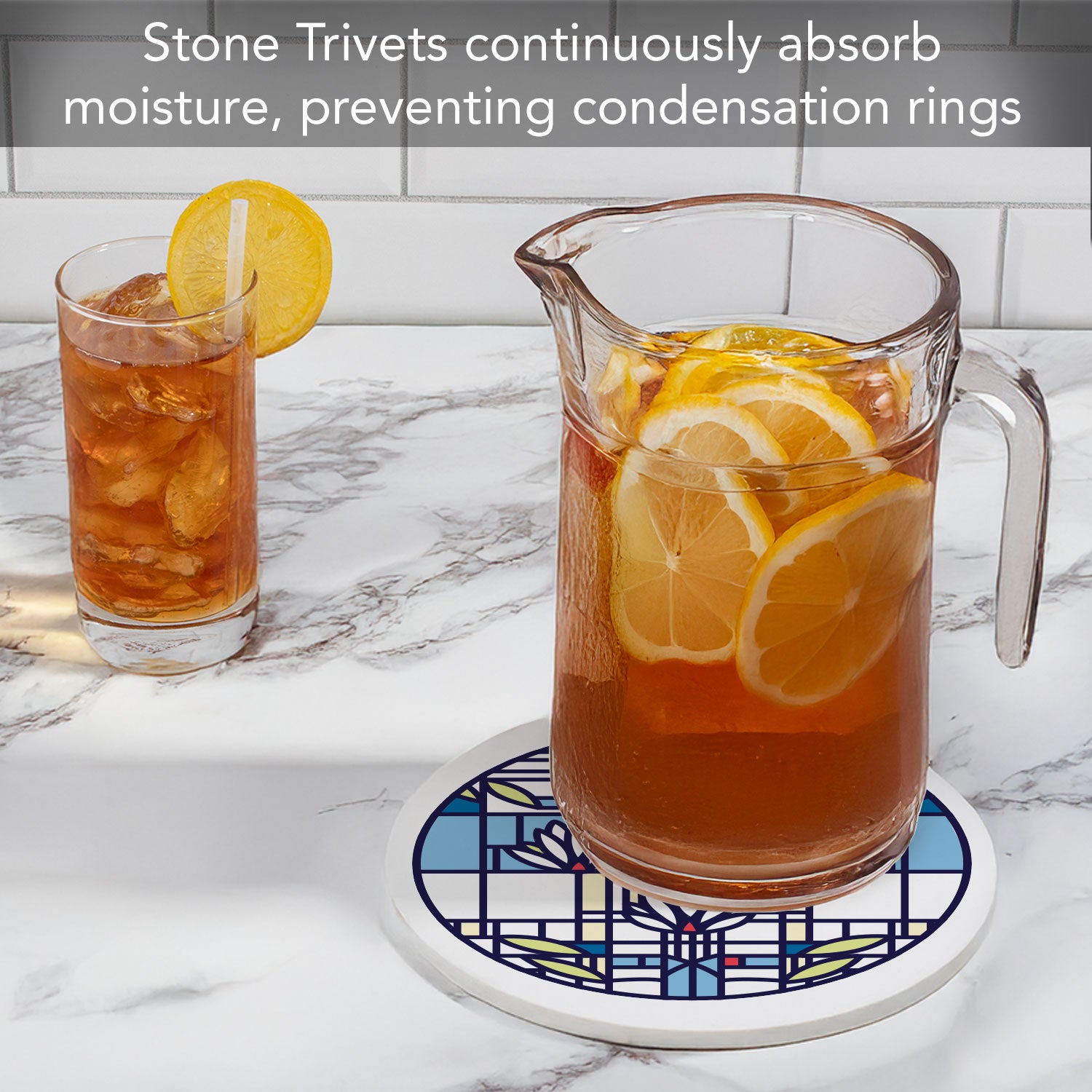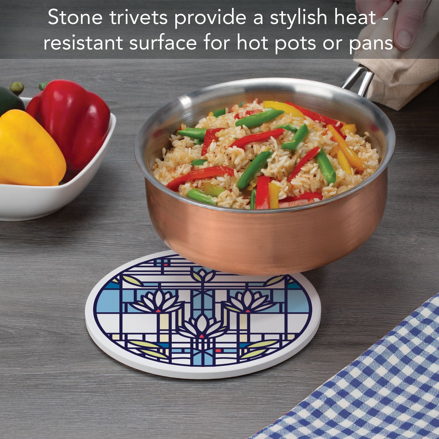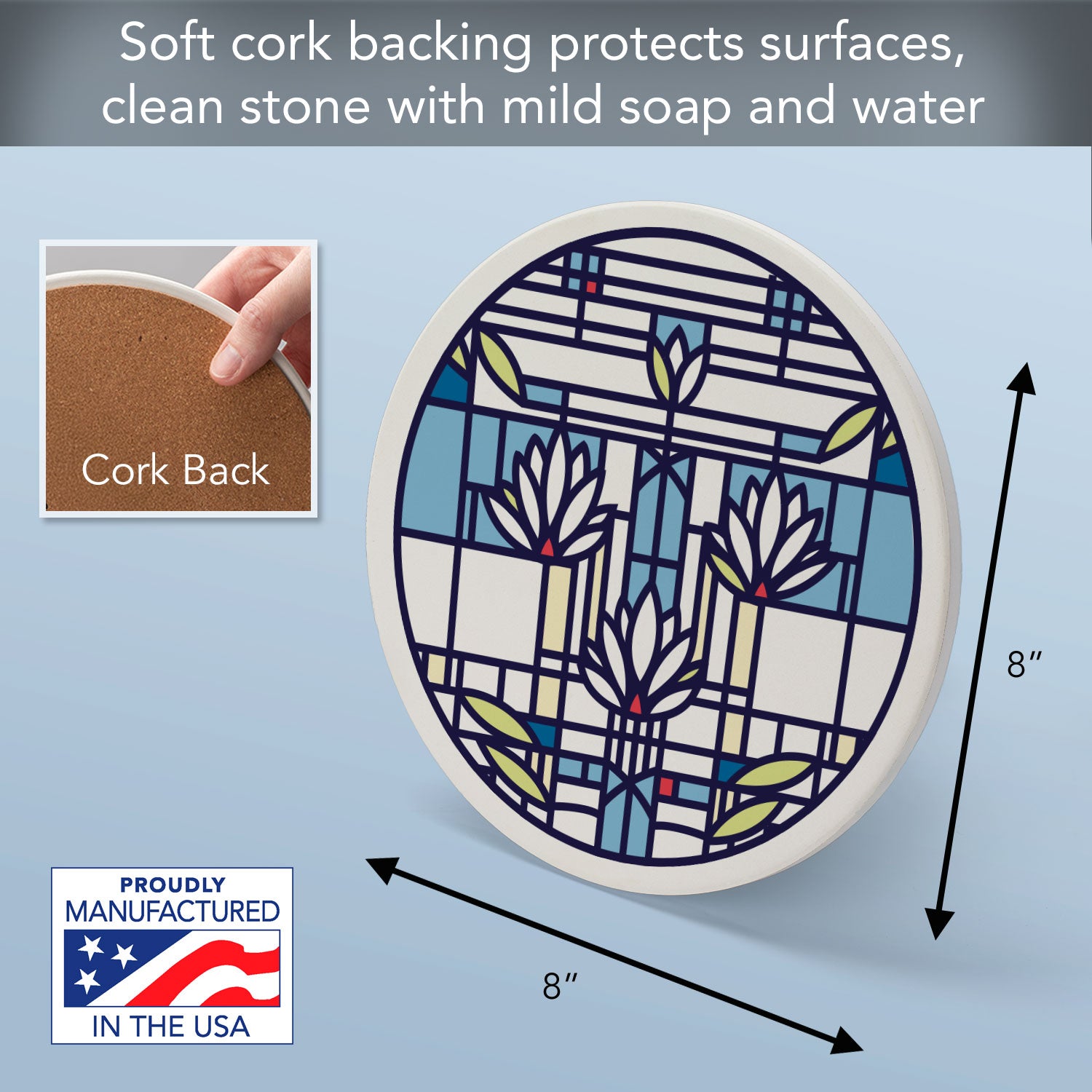 Frank Lloyd Wright Waterlilies 8" Round Stone Trivet Manufactured in the USA