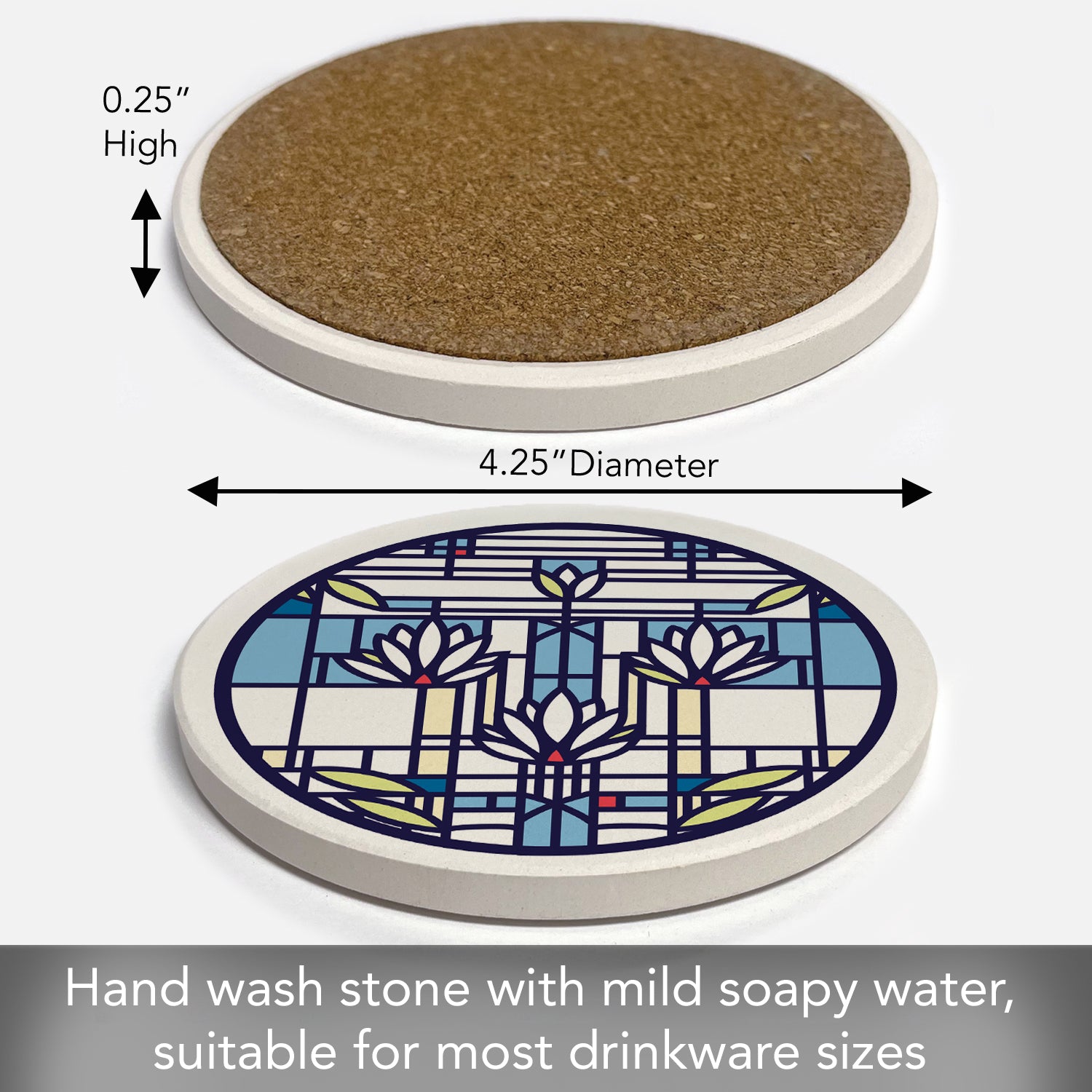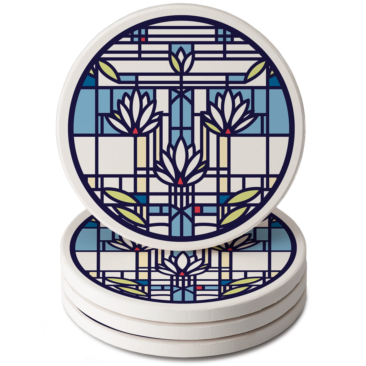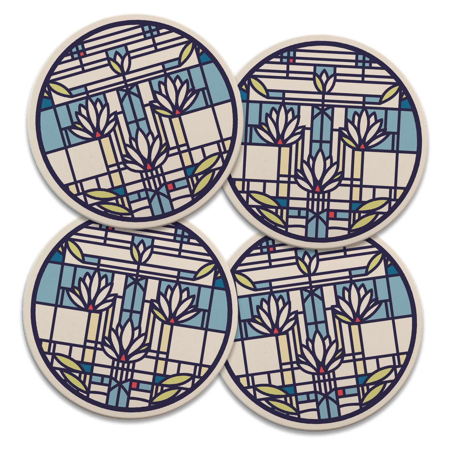 Waterlilies Design by Frank Lloyd Wright 4 Pack Round Absorbent Stone Coasters 4" Diameter