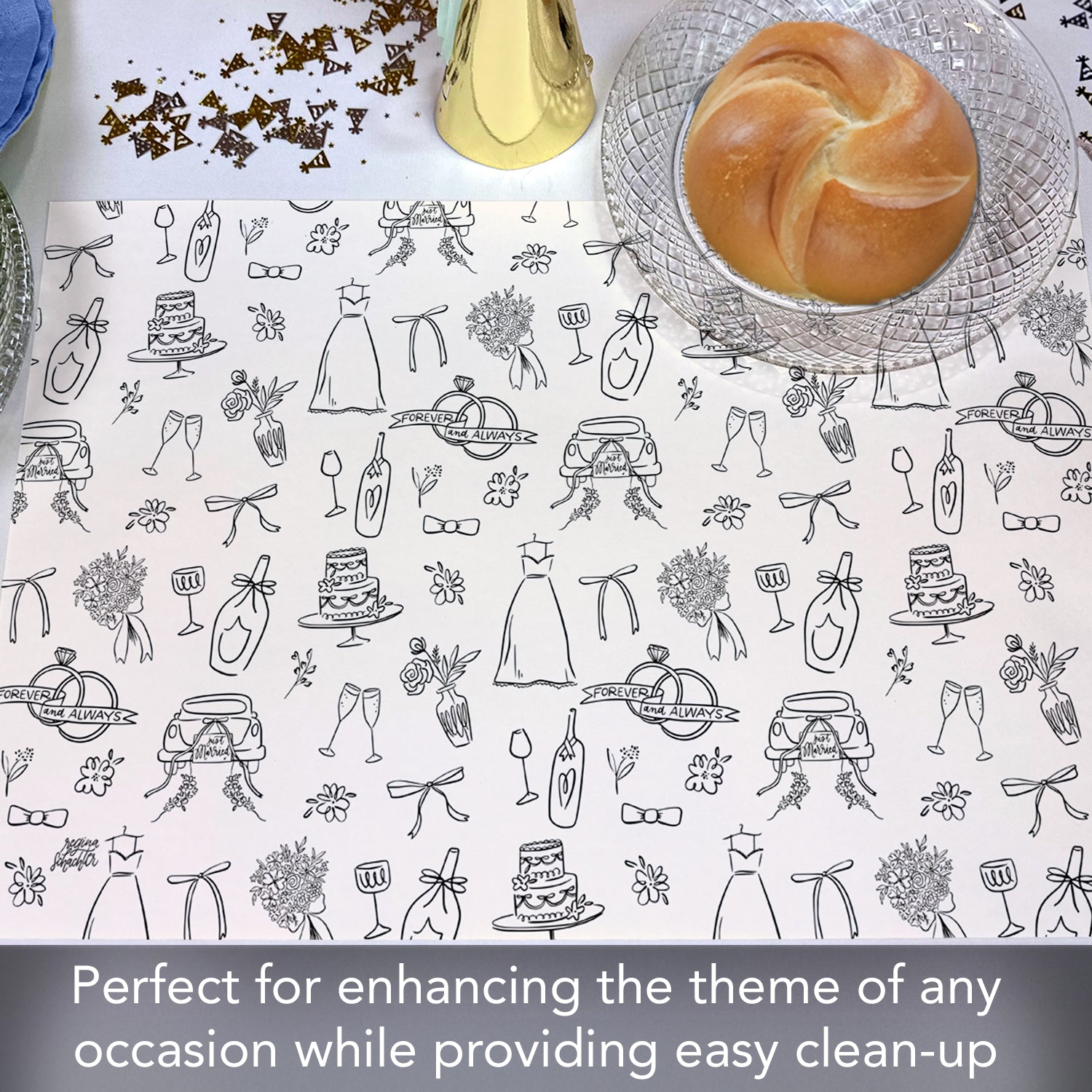 Wedding Wishes 24 Sheet Reusable Premium Paper Stock Placemats in Resealable Storage Bag Made in The USA 17" x 11"