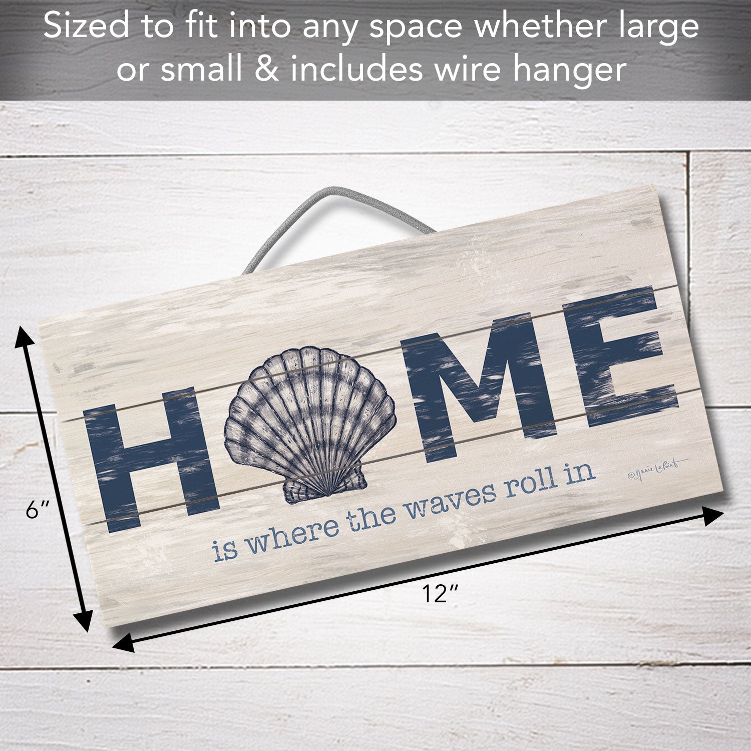 Where the Waves Roll In Decorative Slatted Pallet Wood Sign 12" by 6" Wire Hanger Doubles as an Easel