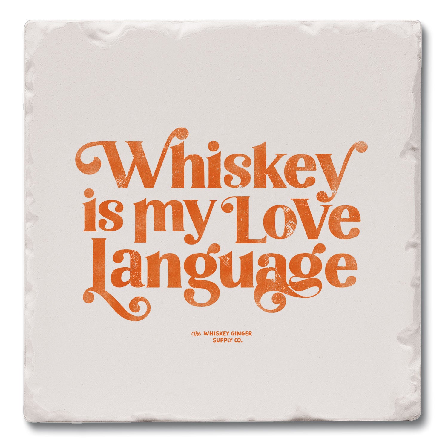 Whiskey Love Language Single Tumbled Tile Coaster 4" Square Create Your Own Collection