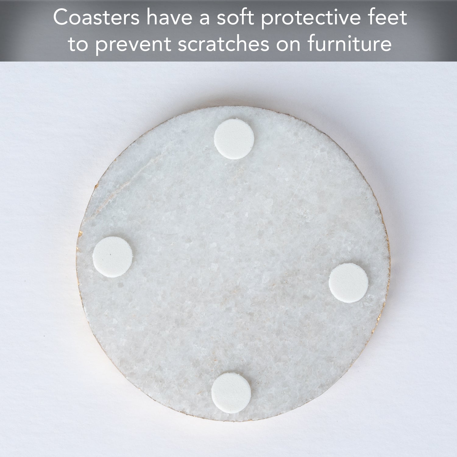 NON-SLIP- Marble coasters have a natural grip and non-slip surface that keeps glasses and mugs from sliding around. Non-Slip feet on bottom of each Coaster keeps the Coaster in place while in use.